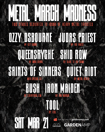 Ozzy Osbourne, Judas Priest, Queensryche, Skid Row, Quiet Riot, Iron Maiden, Bush, Tool tributes – Metal March Madness at Garden Amphitheatre – Garden Grove, CA