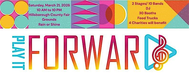 by admin27Feb Play it Forward Music Festival at Greater Hillsborough County Fair – Dover, FL Play it Forward Music Festival at Greater Hillsborough County Fair – Dover, FL 1 1 people viewed this event. 2 Stages, 10 performances, Food Trucks, Craft & Vendor Booths, Beer, Wine & Liquor. All proceeds to 4 charities Tickets-RSVP Link Date And Time Saturday, March 21st, 2026 11:00 AM (PST) Venue Greater Hillsborough County Fair Location 215 Sydney Washer Road, Dover, FL 33527 Event Types Concert or PerformanceMusic Event Category Florida Share With Friends Facebook Twitter Linkedin Xing Pinterest Share This Post: