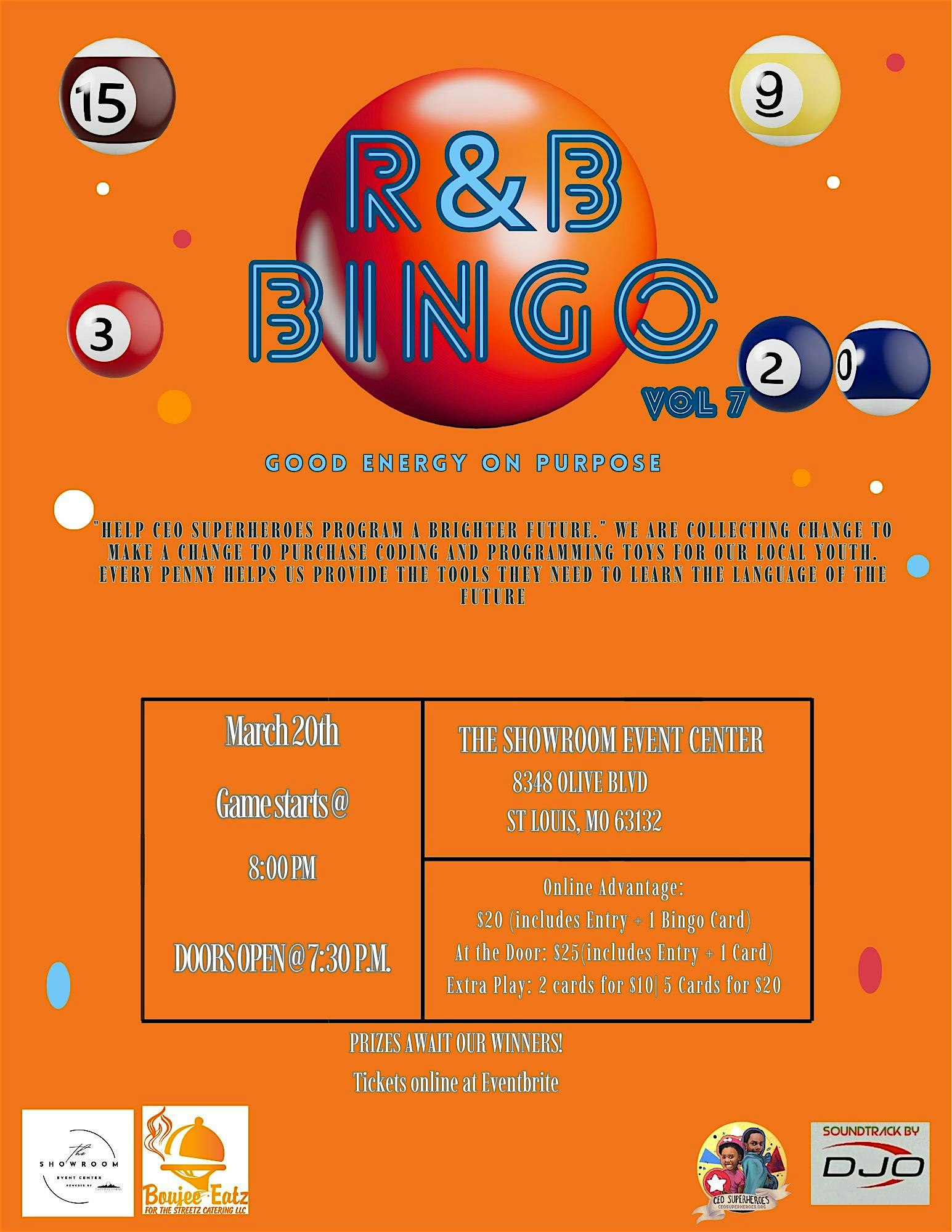 by admin13Feb R&B BINGO VOL. 7: The Sold-Out Series Returns! at The Showroom – St. Louis, MO R&B BINGO VOL. 7: The Sold-Out Series Returns! at The Showroom – St. Louis, MO 1 1 people viewed this event. We are back by popular demand! This isn’t your back in the day bingo. We’re swapping numbers for the greatest R&B hits of all time. Tickets-RSVP Link Date And Time Saturday, March 21st, 2026 01:00 AM (PST) Venue The Showroom Location 8348 Olive Boulevard, St. Louis, MO 63132 Event Types Music Event Category MissouriSt. Louis Share With Friends Facebook Twitter Linkedin Xing Pinterest Share This Post: