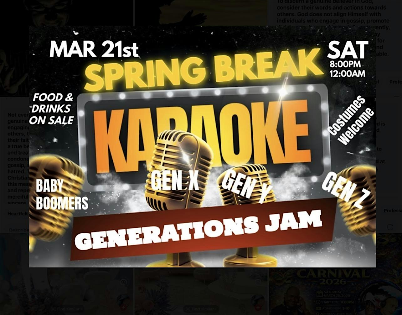 by admin27Feb Spring Break Karaoke at Cercle “ D” Ranch – Homestead, FL Spring Break Karaoke at Cercle “ D” Ranch – Homestead, FL 1 1 people viewed this event. Which generation has the best songs. Find out at Karaoke Generations Jam! Miami-Homestead Tickets-RSVP Link Date And Time Saturday, March 21st, 2026 @ 08:00 PM Location 21941 SW 250th Street, Homestead, FL 33031 Event Types MusicParty or Social Gathering Event Category Florida Share With Friends Facebook Twitter Linkedin Xing Pinterest Share This Post: