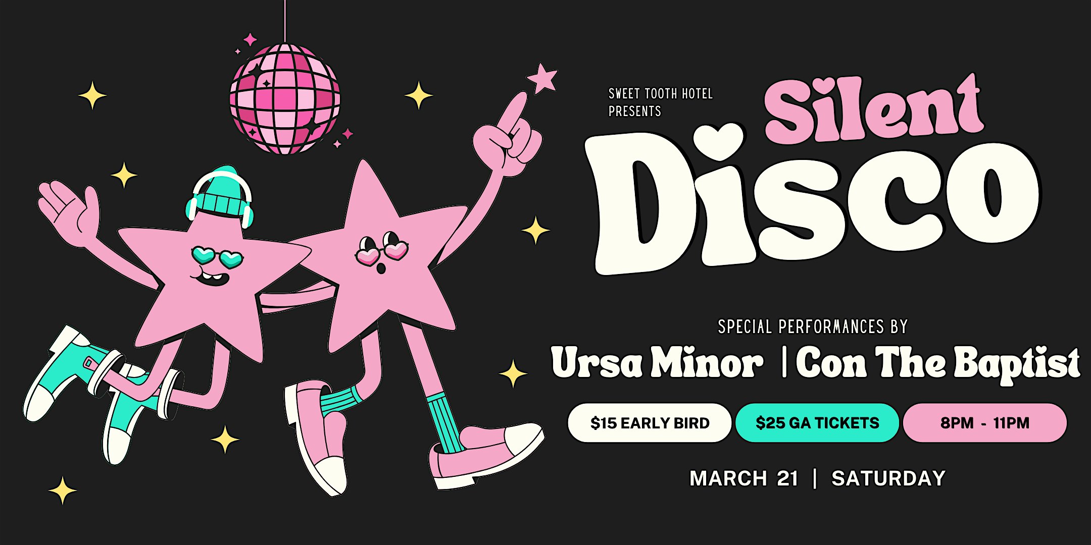by admin27Feb Spring Breakers Silent Disco at Sweet Tooth Hotel at Sweet Tooth Hotel Flagship – Downtown Dallas – Dallas, TX Spring Breakers Silent Disco at Sweet Tooth Hotel at Sweet Tooth Hotel Flagship – Downtown Dallas – Dallas, TX 1 1 people viewed this event. Kick off your spring break at our iconic Silent Disco with URSA MINOR & CON THE BAPTIST! Tickets-RSVP Link Date And Time Saturday, March 21st, 2026 @ 08:00 PM Location 1511 Elm Street, Dallas, TX 75201 Event Types MusicParty or Social Gathering Event Category DallasTexas Share With Friends Facebook Twitter Linkedin Xing Pinterest Share This Post:
