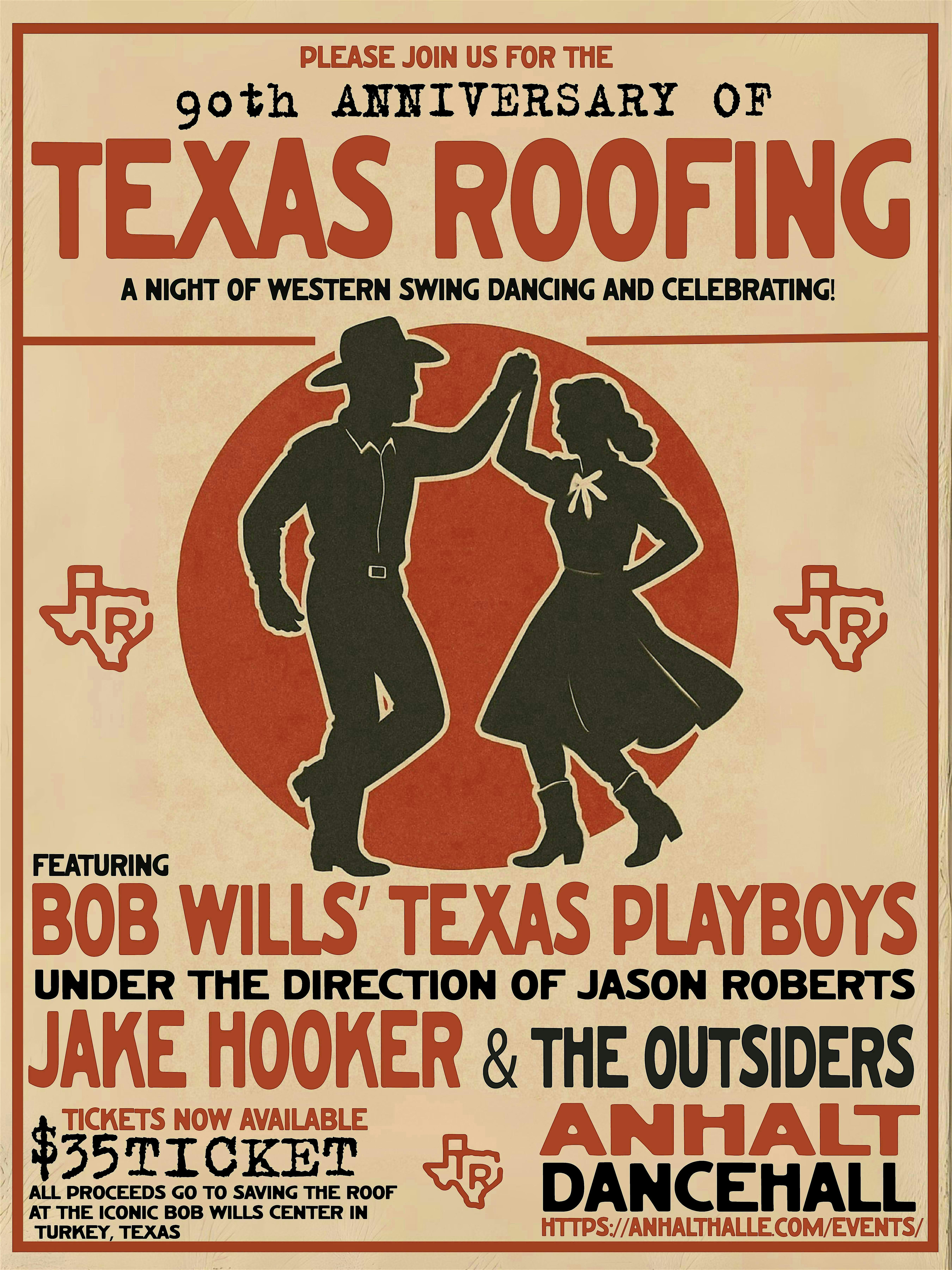 by admin23Feb Texas Roofing celebrates 90 years with Texas Playboys & Jake Hooker! at Anhalt Hall – Spring Branch, TX Texas Roofing celebrates 90 years with Texas Playboys & Jake Hooker! at Anhalt Hall – Spring Branch, TX 1 1 people viewed this event. Get ready to dance your boots off and celebrate Texas Roofing with Texas Playboys & Jake Hooker! Tickets-RSVP Link Date And Time Saturday, March 21st, 2026 06:00 PM (PST) Venue Anhalt Hall Location 2390 Anhalt Road, Spring Branch, TX 78070 Event Types Concert or PerformanceMusic Event Category Texas Share With Friends Facebook Twitter Linkedin Xing Pinterest Share This Post: