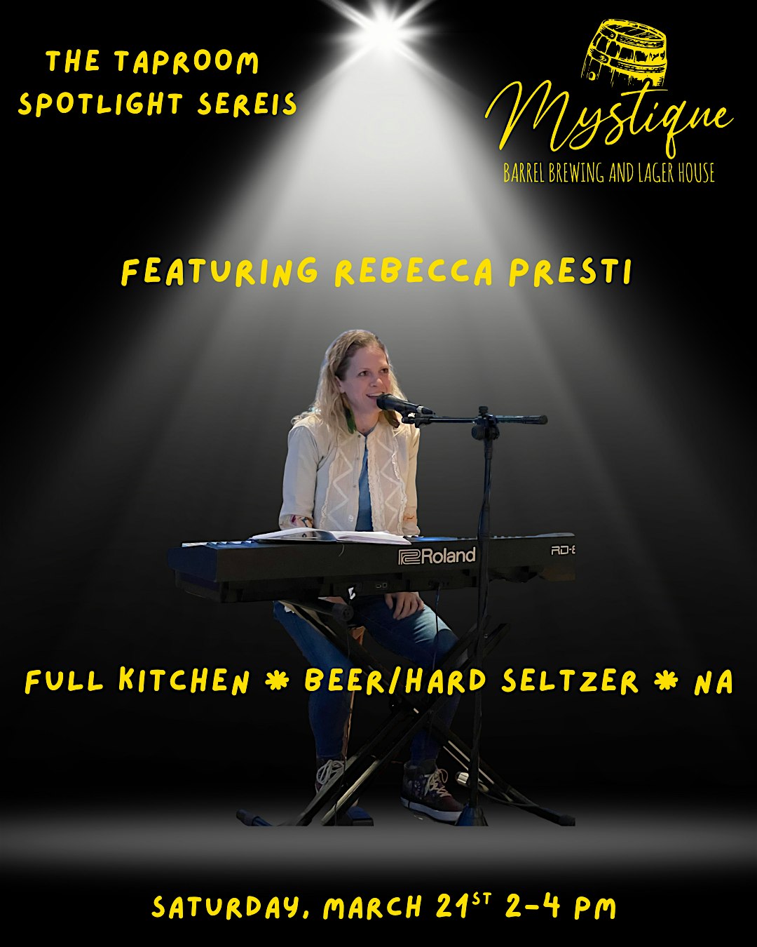 by admin27Feb The Taproom Spotlight – Free Live Performance at Mystique Barrel Brewing and Lager House – Baltimore, MD The Taproom Spotlight – Free Live Performance at Mystique Barrel Brewing and Lager House – Baltimore, MD 1 1 people viewed this event. Featuring up and coming artist Rebecca Presti. Our Taproom Spotlight series features new local artists on the 3rd Saturday of every month. Tickets-RSVP Link Date And Time Saturday, March 21st, 2026 02:00 PM (PST) Venue Mystique Barrel Brewing and Lager House Location 912 Washington Boulevard, Baltimore, MD 21230 Event Types Concert or PerformanceMusic Event Category BaltimoreMaryland Share With Friends Facebook Twitter Linkedin Xing Pinterest Share This Post: