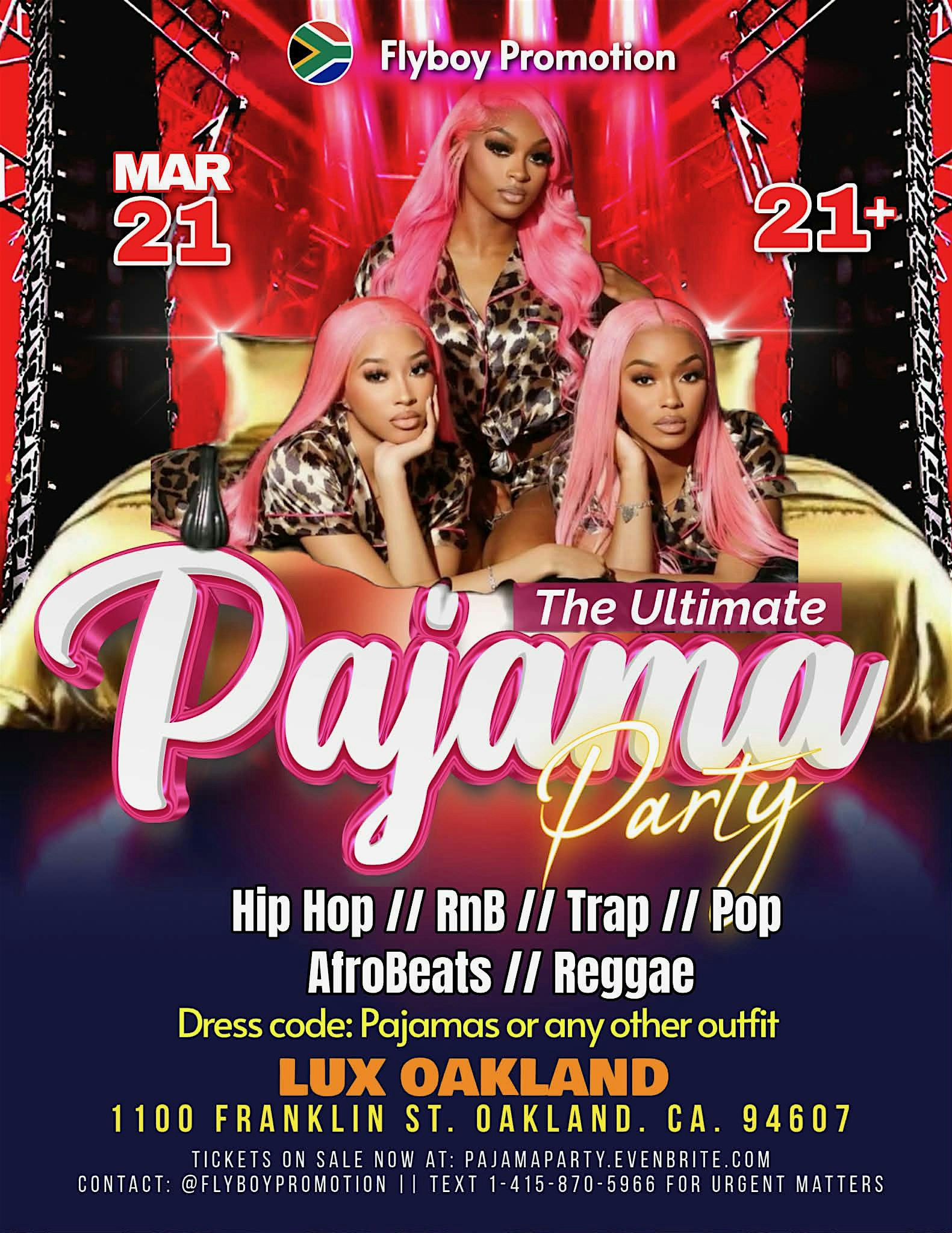 by admin24Feb The Ultimate Pajamas Party – Saturday, March 21 at Lux Oakland – Oakland, CA The Ultimate Pajamas Party – Saturday, March 21 at Lux Oakland – Oakland, CA 2 2 people viewed this event. The Ultimate Pajama Party is a prime sexy, hot but fun experience where everyone feel free & get loose as we kick off 2026. Grab Tix ASAP! Tickets-RSVP Link Date And Time Saturday, March 21st, 2026 09:00 AM (PST) Venue Lux Oakland Location 1100 Franklin Street, Oakland, CA 94607 Event Types Party or Social GatheringSeasonal & Holiday Event Category CaliforniaOakland Share With Friends Facebook Twitter Linkedin Xing Pinterest Share This Post:
