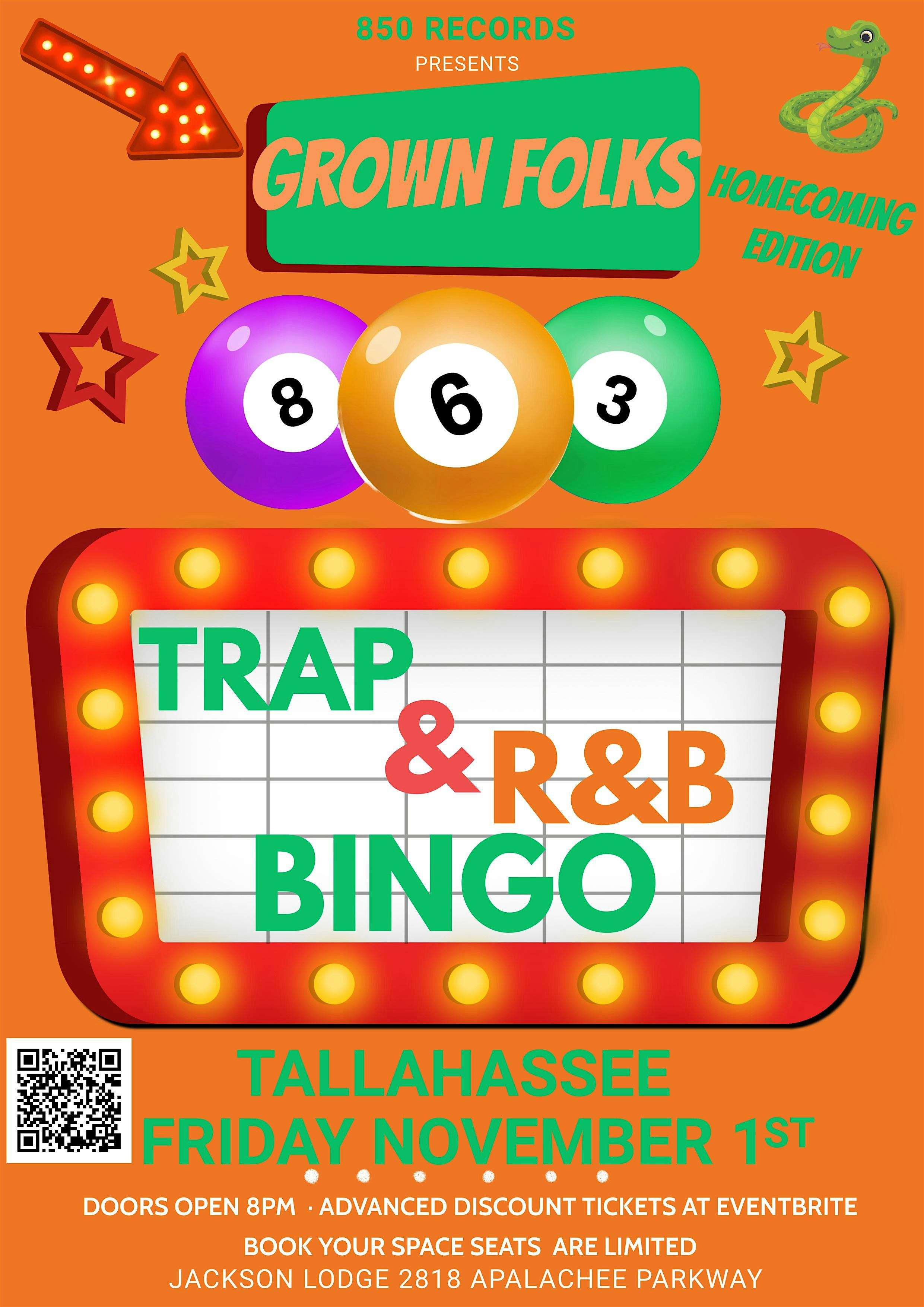 by admin27Feb TRAP & R&B BINGO TALLAHASSEE DJ DAP BIRTHDAY BASH EDITION at Jackson Masonic Lodge No. 1 – Tallahassee, FL TRAP & R&B BINGO TALLAHASSEE DJ DAP BIRTHDAY BASH EDITION at Jackson Masonic Lodge No. 1 – Tallahassee, FL 1 1 people viewed this event. Trap & R&B Bingo Tallahassee a 21 plus event!!! Tickets-RSVP Link Date And Time Saturday, March 21st, 2026 08:00 PM (PST) Venue Jackson Masonic Lodge No. 1 Location 2818 Apalachee Parkway, Tallahassee, FL 32301 Event Types MusicParty or Social Gathering Event Category FloridaTallahassee Share With Friends Facebook Twitter Linkedin Xing Pinterest Share This Post: