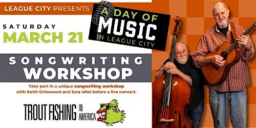 by admin23Feb ‘Trout Fishing in America’ Songwriting Workshop at Butler’s Courtyard – League City, TX ‘Trout Fishing in America’ Songwriting Workshop at Butler’s Courtyard – League City, TX 1 1 people viewed this event. Songwriting with the four-time Grammy nominated group, Trout Fishing in America! Tickets-RSVP Link Date And Time Saturday, March 21st, 2026 04:00 PM (PST) Venue Butler's Courtyard Location 122 North Michigan Avenue, League City, TX 77573 Event Types Music Event Category Texas Share With Friends Facebook Twitter Linkedin Xing Pinterest Share This Post: