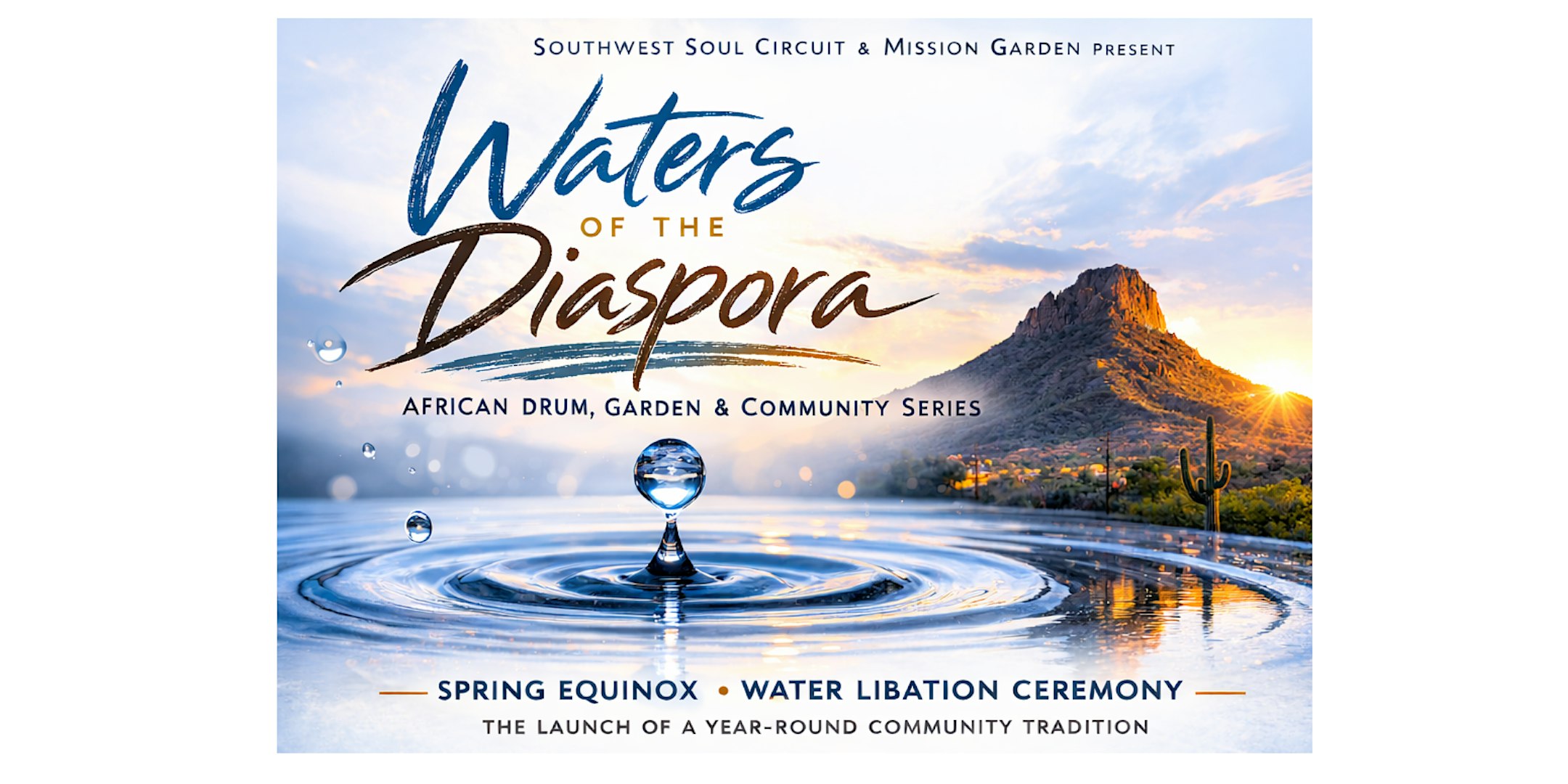Waters of the Diaspora: African Drum, Garden & Community Series at Mission Garden – Tucson, AZ Waters of the Diaspora: African Drum, Garden & Community Series at Mission Garden – Tucson, AZ 2 2 people viewed this event. On the Spring Equinox, when day and night stand in perfect balance, Mission Garden will host an African Drum & Water Libation Ceremony. Tickets-RSVP Link Register for event Date And Time Saturday, March 21st, 2026 @ 03:00 PM Location 946 West Mission Lane, Tucson, AZ 85745 Event Types Community & CultureFestival or Fair Event Category ArizonaTucson Share With Friends Facebook Twitter Linkedin Xing Pinterest