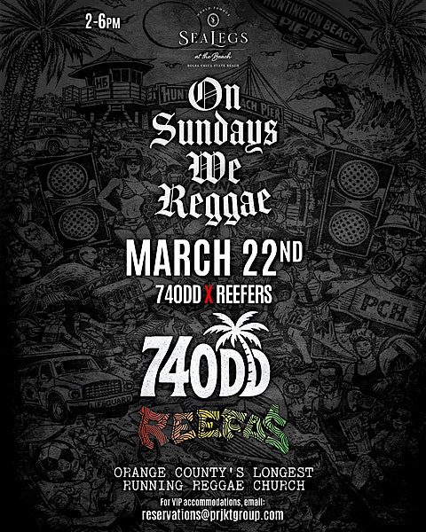 by admin27Feb 740DD x Refeers at SeaLegs at the Beach – Huntington Beach, CA 740DD x Refeers at SeaLegs at the Beach – Huntington Beach, CA 1 1 people viewed this event. 740DD X Refeers on March 22nd performing at 2pm. All ages welcome. To book VIP reservation email reservations@prjktgroup.com Tickets-RSVP Link Date And Time Sunday, March 22nd, 2026 02:00 PM (PST) Venue SeaLegs at the Beach Location 17851 Pacific Coast Highway, Huntington Beach, CA 92649 Event Types Concert or PerformanceMusic Event Category CaliforniaIrvine Share With Friends Facebook Twitter Linkedin Xing Pinterest Share This Post: