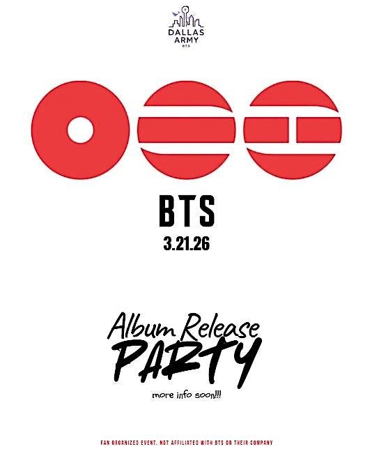 by admin13Feb Album Release Party for Army at 11433 Goodnight Ln – Dallas, TX Album Release Party for Army at 11433 Goodnight Ln – Dallas, TX 1 1 people viewed this event. ARMY, the wait is finally over! Tickets-RSVP Link Date And Time Sunday, March 22nd, 2026 01:00 AM (PST) Venue 11433 Goodnight Ln Location 11433 Goodnight Lane, Dallas, TX 75229 Event Types MusicParty or Social Gathering Event Category DallasTexas Share With Friends Facebook Twitter Linkedin Xing Pinterest Share This Post: