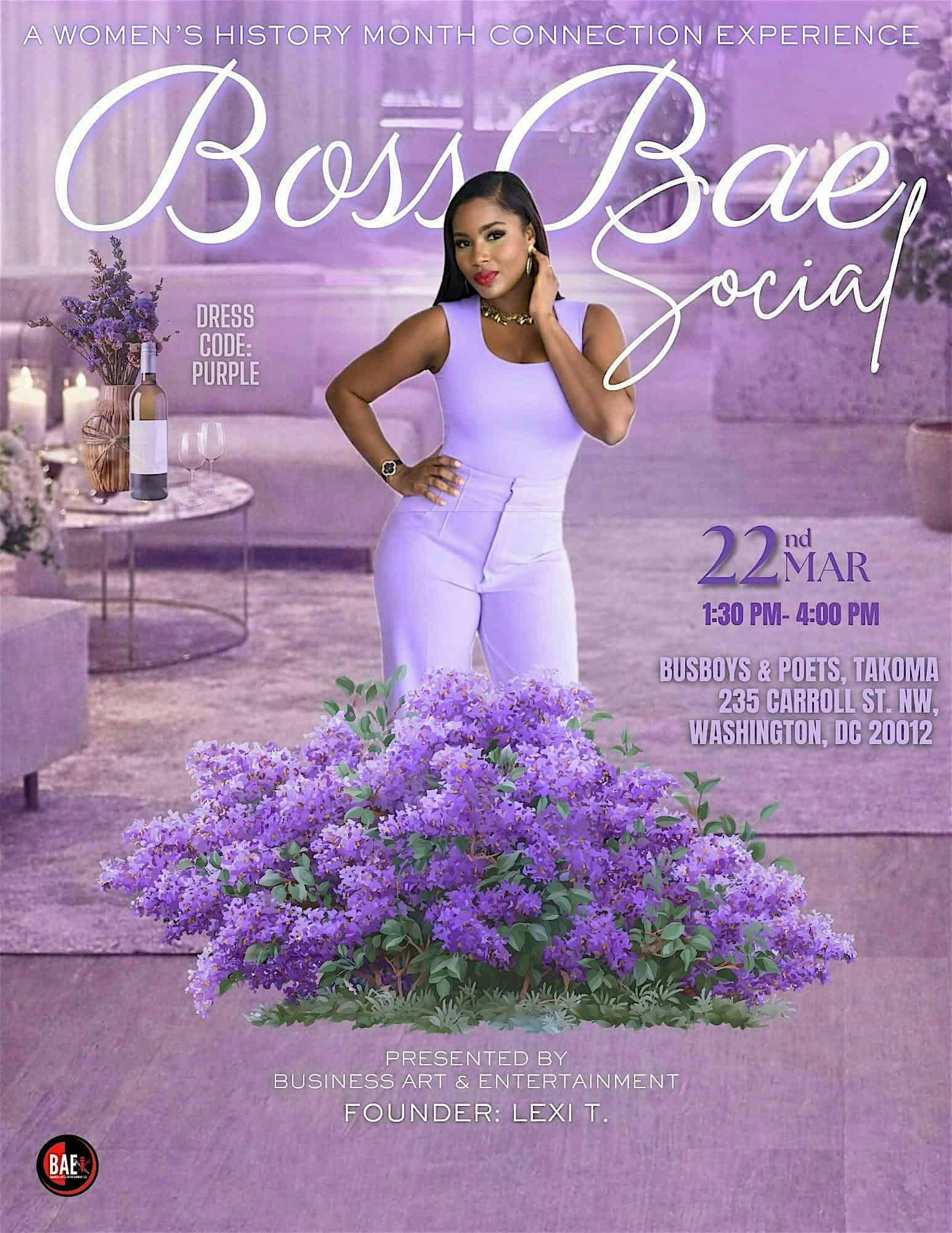 by admin14Feb Boss Bae Social – A Women’s History Month Connection Experience at Busboys and Poets – Washington, DC Boss Bae Social – A Women’s History Month Connection Experience at Busboys and Poets – Washington, DC 2 2 people viewed this event. Join us for Boss Bae Social, a dope in-person vibe celebrating Women’s History Month with queens like you! Tickets-RSVP Link Date And Time Sunday, March 22nd, 2026 05:00 PM (PST) Venue Busboys and Poets Location 235 Carroll Street Northwest, Washington, DC 20012 Share With Friends Facebook Twitter Linkedin Xing Pinterest Share This Post: