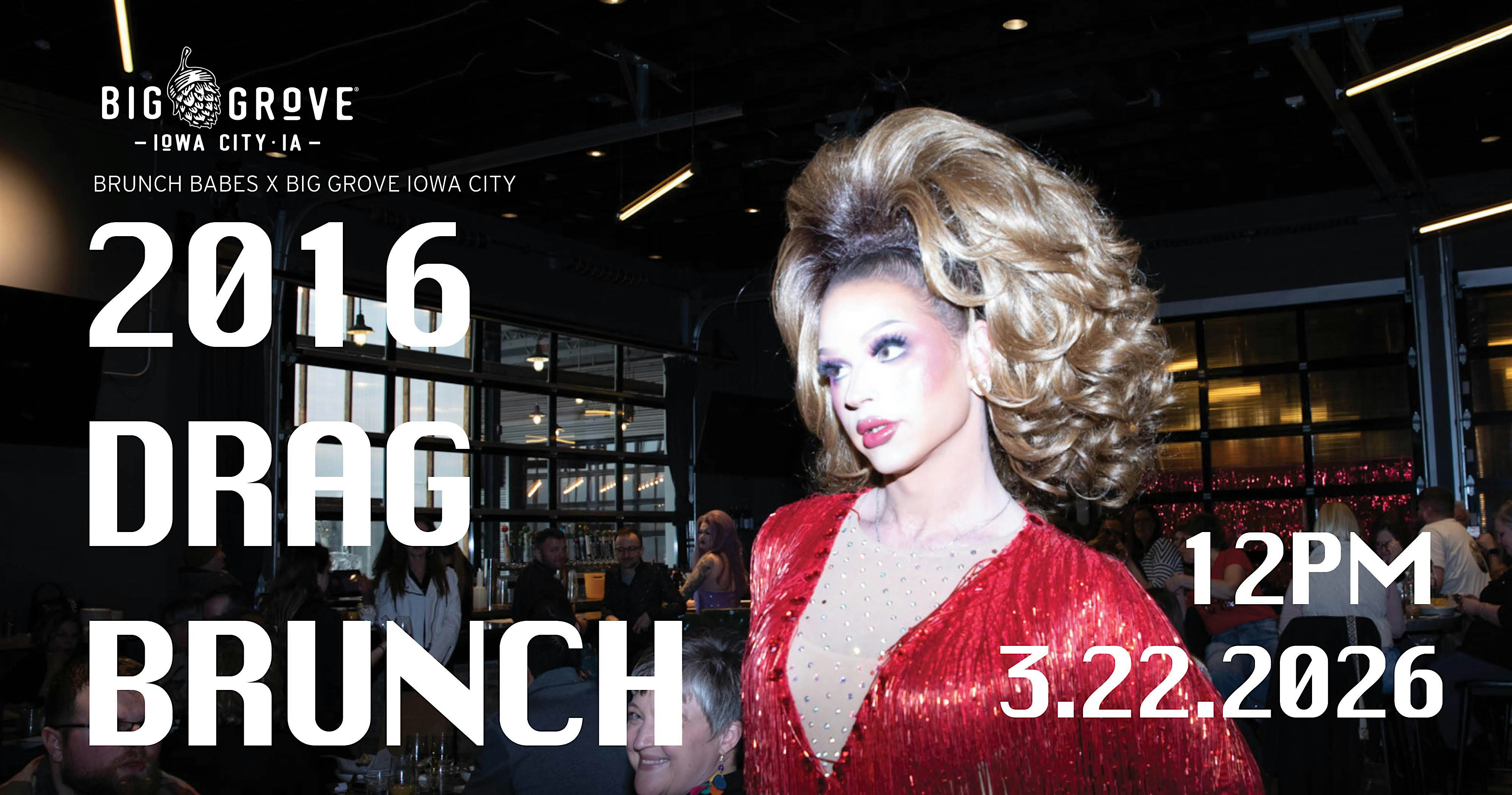 by admin24Feb Brunch Babes 2016 Drag Brunch | Iowa City at Big Grove Brewery & Taproom – Iowa City, IA Brunch Babes 2016 Drag Brunch | Iowa City at Big Grove Brewery & Taproom – Iowa City, IA 2 2 people viewed this event. Grab your chokers and your favorite Snapchat filter, because we’re going back to the era of peak Instagram. Tickets-RSVP Link Date And Time Sunday, March 22nd, 2026 12:00 PM (PST) Venue Big Grove Brewery & Taproom Location 1225 South Gilbert Street, Iowa City, IA 52240 Event Types Food & Drink Event Category Iowa Share With Friends Facebook Twitter Linkedin Xing Pinterest Share This Post: