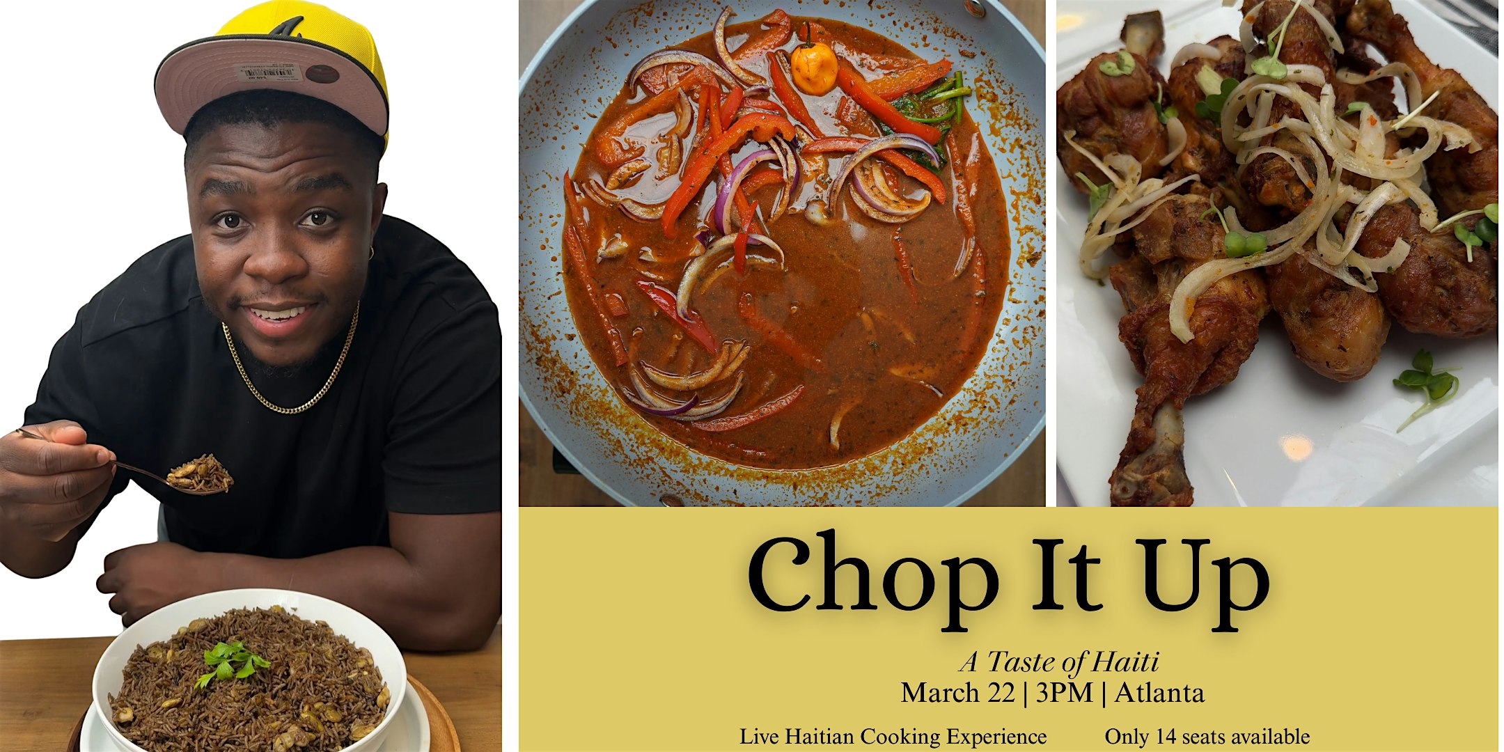by admin24Feb Chop It Up: A Taste of Haiti, Hosted by Chefchosen at Atlanta Shared Kitchen – Peachtree Corners, GA Chop It Up: A Taste of Haiti, Hosted by Chefchosen at Atlanta Shared Kitchen – Peachtree Corners, GA 3 3 people viewed this event. Live Haitian cooking experience with a hands-on epis workshop, bold flavors, and authentic diri djon djon. Tickets-RSVP Link Date And Time Sunday, March 22nd, 2026 03:00 PM (PST) Venue Atlanta Shared Kitchen Location 6899 Peachtree Industrial Boulevard, Peachtree Corners, GA 30092 Event Types Food & Drink Event Category Georgia Share With Friends Facebook Twitter Linkedin Xing Pinterest Share This Post: