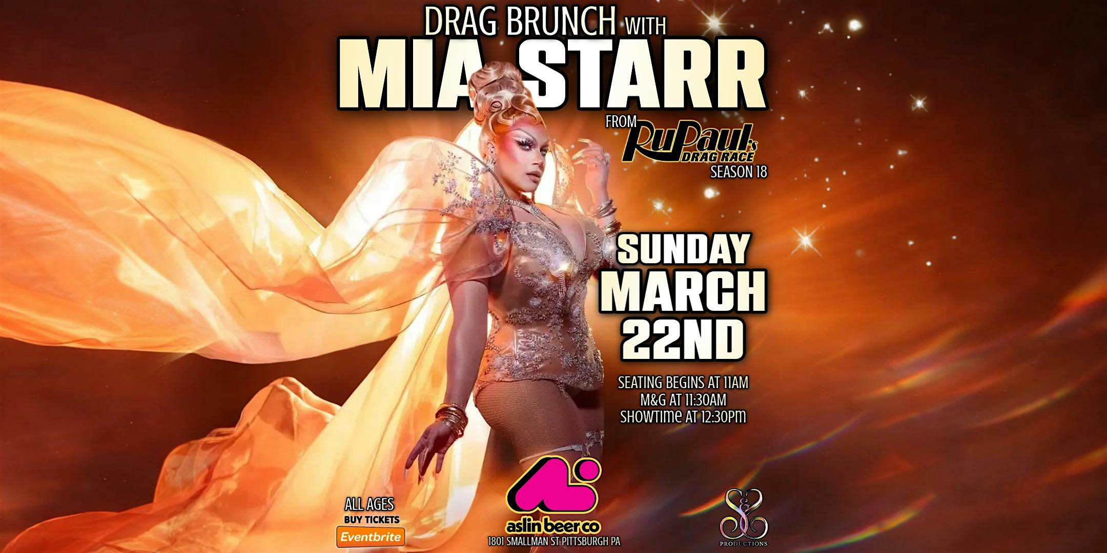 by admin13Feb DRAG BRUNCH WITH MIA STARR – RPDR S18 at Aslin Beer Company – Pittsburgh, PA DRAG BRUNCH WITH MIA STARR – RPDR S18 at Aslin Beer Company – Pittsburgh, PA 1 1 people viewed this event. DRAG BRUNCH WITH MIA STARR AT ASLIN BEER CO./ SUNDAY MARCH 22ND / DOORS AT 11AM – MEET AND GREET AT 11:30AM – SHOWTIME AT 12:30PM Tickets-RSVP Link Date And Time Sunday, March 22nd, 2026 03:00 PM (PST) Venue Aslin Beer Company Location 1801 Smallman Street, Pittsburgh, PA 15222 Event Types Food & DrinkParty or Social Gathering Event Category PennsylvaniaPittsburgh Share With Friends Facebook Twitter Linkedin Xing Pinterest Share This Post: