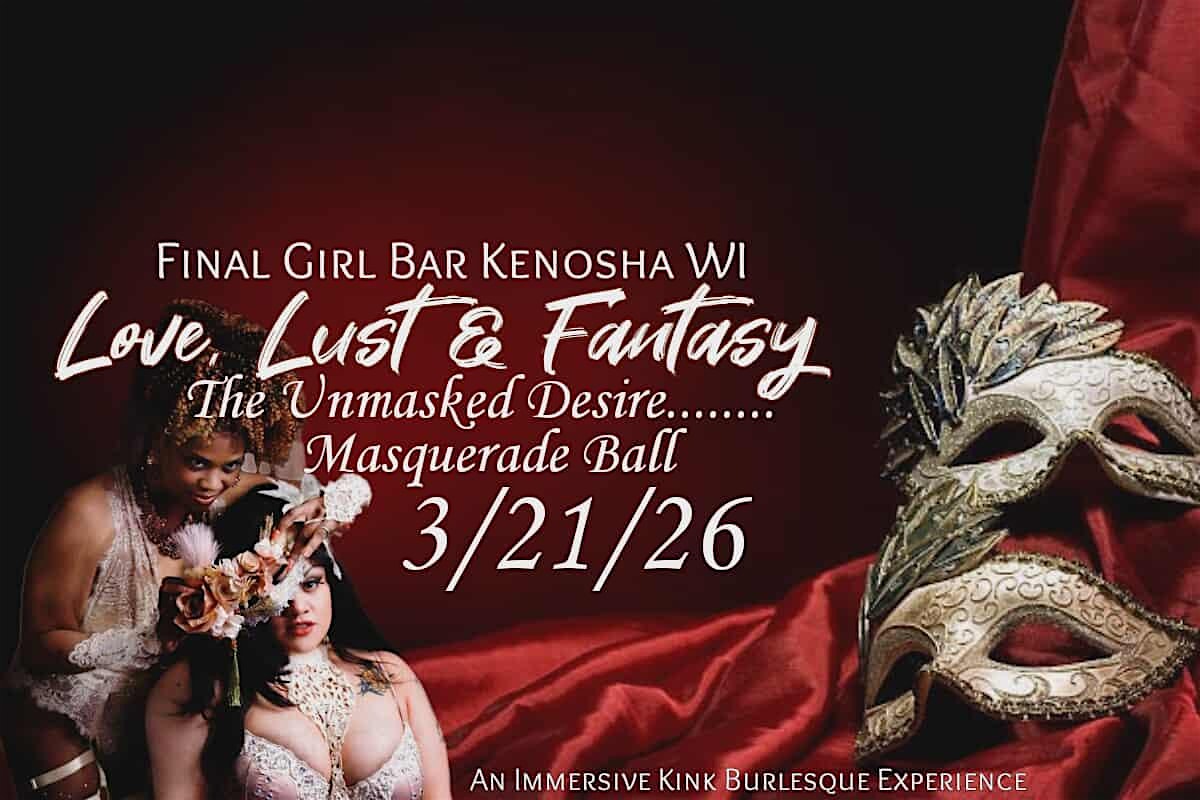 by admin13Feb Fantasy After dark Burlesque Cabaret at The Final Girl – Kenosha, WI Fantasy After dark Burlesque Cabaret at The Final Girl – Kenosha, WI 2 2 people viewed this event. Dress in your best masquerade and join our immersive burlesque at Final Girl Bar, after dark magic awaits! 3/21/26, doors 7:30, show 9. Tickets-RSVP Link Date And Time Sunday, March 22nd, 2026 12:00 AM (PST) Venue The Final Girl Location 7546 Sheridan Road, Kenosha, WI 53143 Event Types Party or Social GatheringPerforming & Visual Arts Event Category Wisconsin Share With Friends Facebook Twitter Linkedin Xing Pinterest Share This Post: