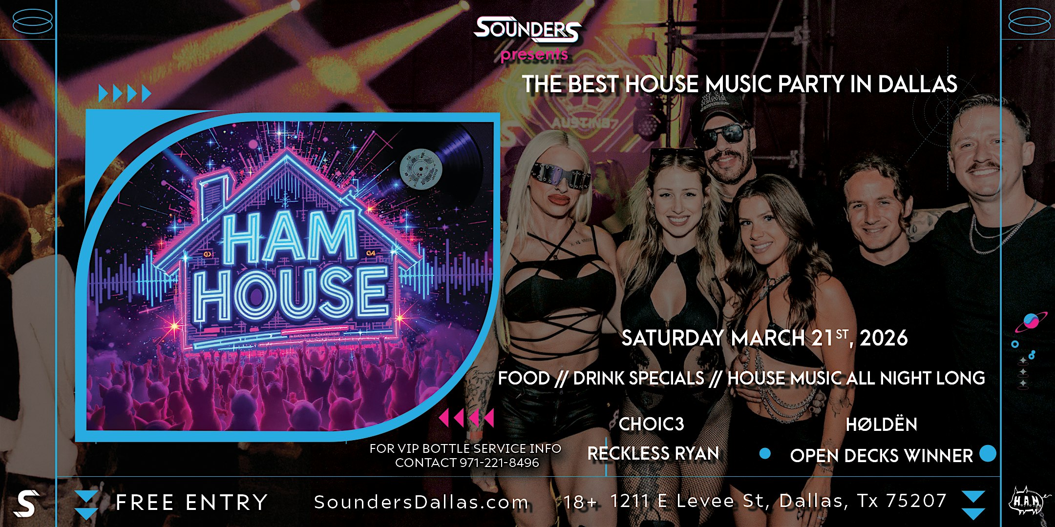 by admin13Feb HAM House 3/21 – Dallas, TX at Sounders – Dallas, TX HAM House 3/21 – Dallas, TX at Sounders – Dallas, TX 2 2 people viewed this event. A night of house music only at Sounders – Dallas’ favorite new EDM night club! Tickets-RSVP Link Date And Time Sunday, March 22nd, 2026 02:00 AM (PST) Venue Sounders Location 1211 East Levee Street, Dallas, TX 75207 Event Types Concert or PerformanceMusic Event Category DallasTexas Share With Friends Facebook Twitter Linkedin Xing Pinterest Share This Post: