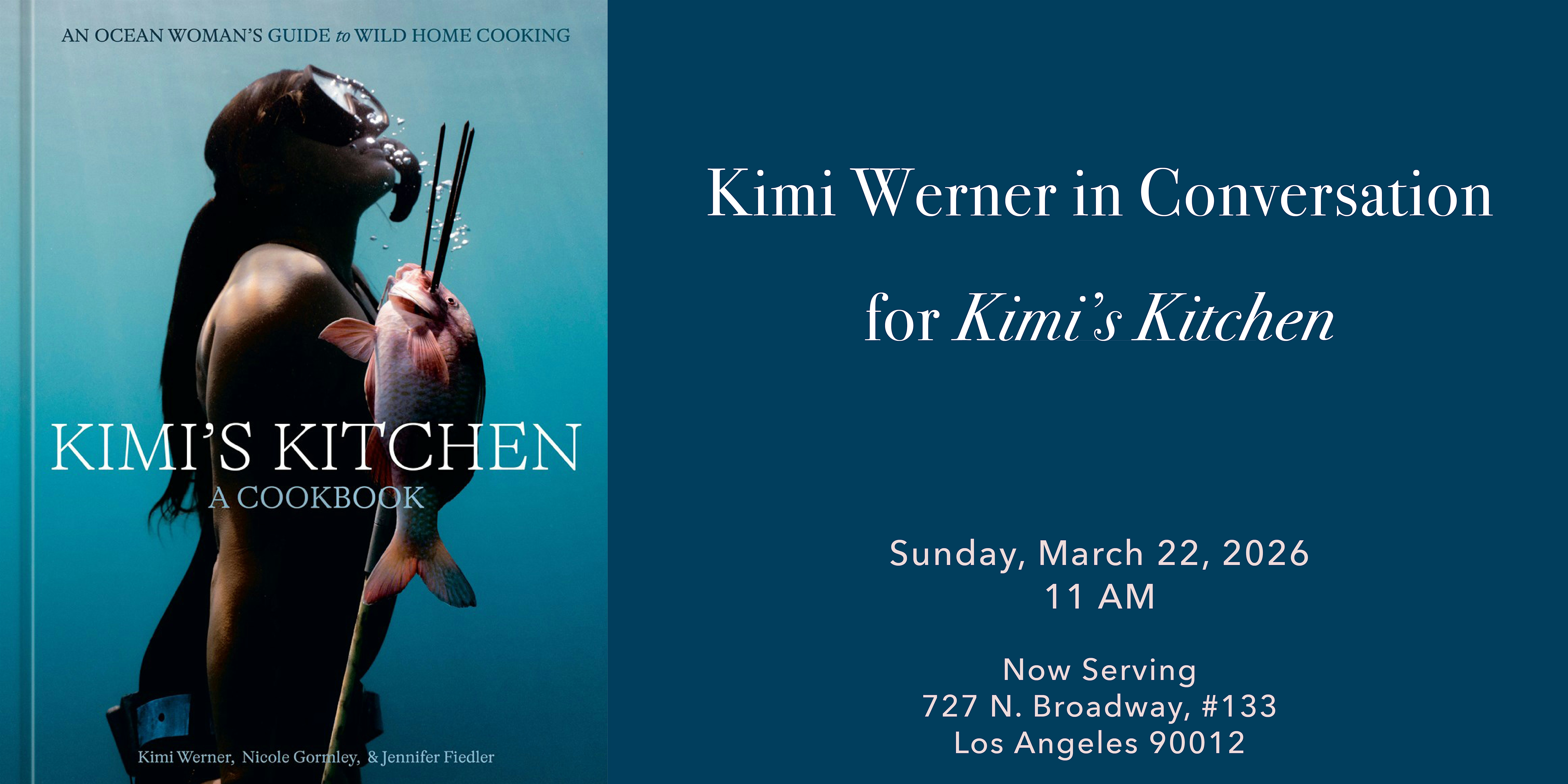 by admin27Feb Kimi Werner in Conversation for Kimi’s Kitchen at Now Serving – Los Angeles, CA Kimi Werner in Conversation for Kimi’s Kitchen at Now Serving – Los Angeles, CA 1 1 people viewed this event. Kimi Werner in Conversation for Kimi’s Kithchen. Book signing to follow. Tickets-RSVP Link Date And Time Sunday, March 22nd, 2026 11:00 AM (PST) Venue Now Serving Location 727 North Broadway, Los Angeles, CA 90012 Event Types Food & Drink Event Category CaliforniaLos Angeles Share With Friends Facebook Twitter Linkedin Xing Pinterest Share This Post: