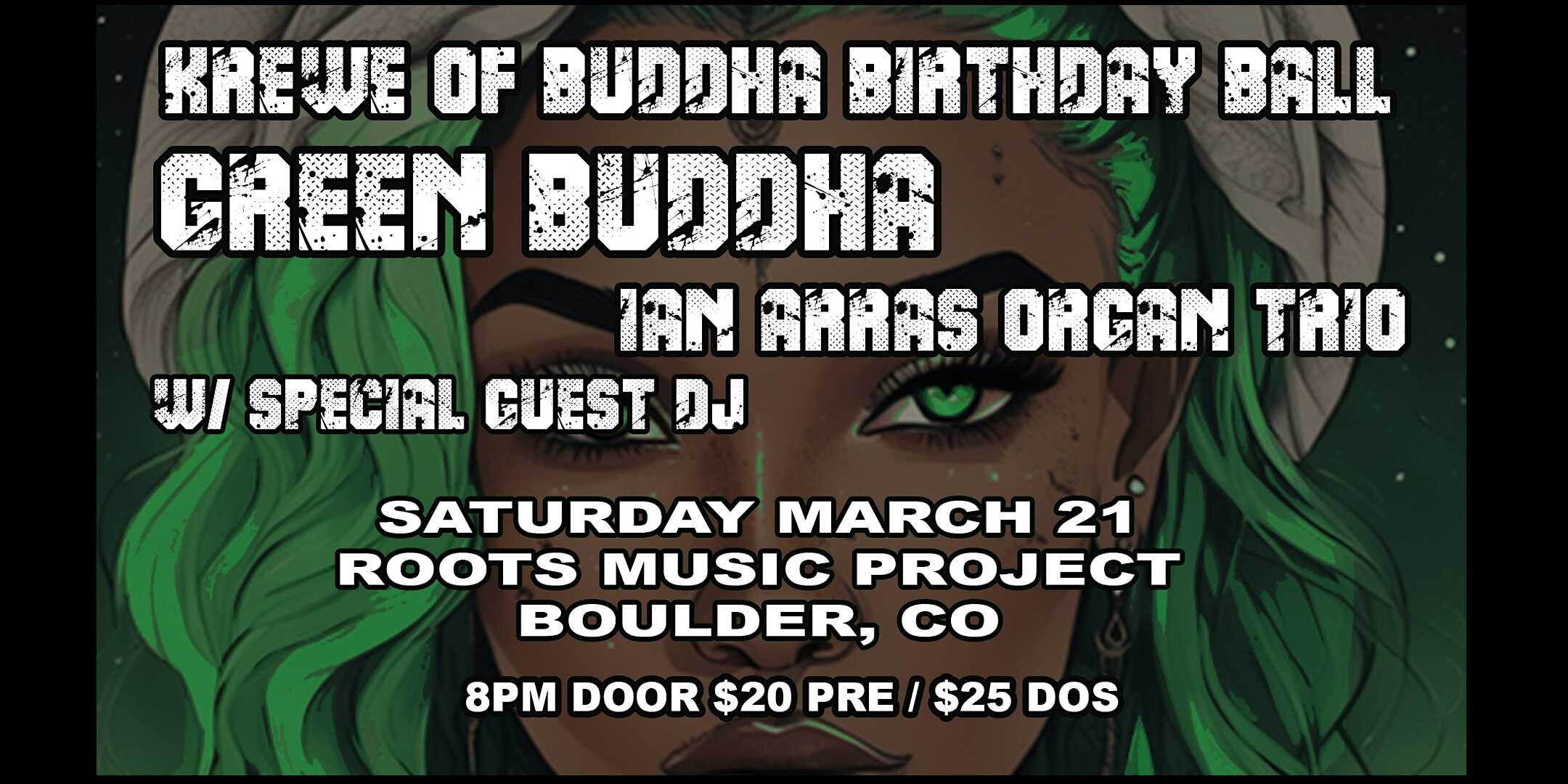 by admin14Feb Krewe of Buddha Birthday Ball: Green Buddha & Ian Arras Organ Trio, w/ DJ at Roots Music Project – Boulder, CO Krewe of Buddha Birthday Ball: Green Buddha & Ian Arras Organ Trio, w/ DJ at Roots Music Project – Boulder, CO 4 4 people viewed this event. Reggae, funk & soul collide at the Krewe of Buddha Birthday Ball with Green Buddha, Ian Arras Organ Trio & a late-nite special guest DJ! Tickets-RSVP Link Date And Time Sunday, March 22nd, 2026 03:00 AM (PST) Venue Roots Music Project Location 4747 Pearl, Boulder, CO 80301 Event Types Concert or PerformancePerforming & Visual Arts Event Category BoulderColorado Share With Friends Facebook Twitter Linkedin Xing Pinterest Share This Post: