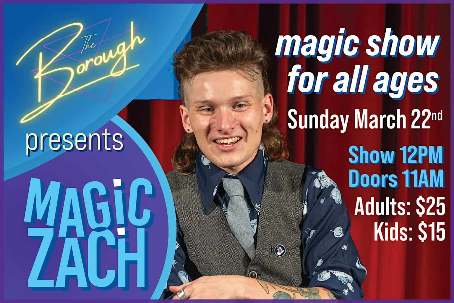 by admin14Feb Magic Zach Magic Show! at The Borough – Downingtown, PA Magic Zach Magic Show! at The Borough – Downingtown, PA 2 2 people viewed this event. Get ready to be wowed at the Magic Zach Magic Show! Tricks, laughs, and fun live—don’t miss it! Tickets-RSVP Link Date And Time Sunday, March 22nd, 2026 04:00 PM (PST) Venue The Borough Location 149 East Lancaster Avenue, Downingtown, PA 19335 Event Types Concert or PerformancePerforming & Visual Arts Event Category Pennsylvania Share With Friends Facebook Twitter Linkedin Xing Pinterest Share This Post: