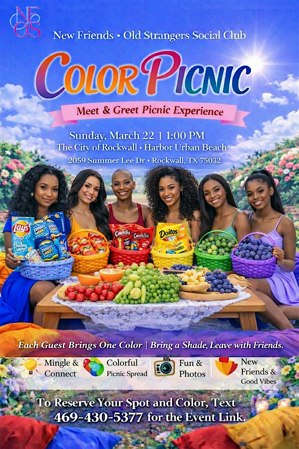 by admin27Feb Meet & Greet Color Picnic at City of Rockwall – Harbor Urban Beach – Rockwall, TX Meet & Greet Color Picnic at City of Rockwall – Harbor Urban Beach – Rockwall, TX 1 1 people viewed this event. Join us for a fun in-person Meet & Greet Color Picnic filled with laughs, friends, and vibrant vibes! Tickets-RSVP Link Date And Time Sunday, March 22nd, 2026 @ 01:00 PM Location 2125 Summer Lee Drive, Rockwall, TX 75032 Event Types Community & CultureParty or Social Gathering Event Category DallasTexas Share With Friends Facebook Twitter Linkedin Xing Pinterest Share This Post: