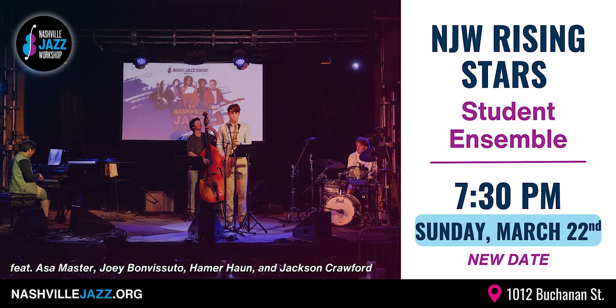 by admin23Feb NJW Rising Stars Ensemble at Nashville Jazz Workshop – Nashville, TN NJW Rising Stars Ensemble at Nashville Jazz Workshop – Nashville, TN 2 2 people viewed this event. Come hear the next generation of jazz in Nashville on Sunday, March 22nd at 7:30 PM as the NJW Rising Stars Ensemble takes the stage! Tickets-RSVP Link Date And Time Sunday, March 22nd, 2026 07:00 PM (PST) Venue Nashville Jazz Workshop Location 1012 Buchanan Street, Nashville, TN 37208 Event Types Concert or PerformanceMusic Event Category NashvilleTennessee Share With Friends Facebook Twitter Linkedin Xing Pinterest Share This Post: