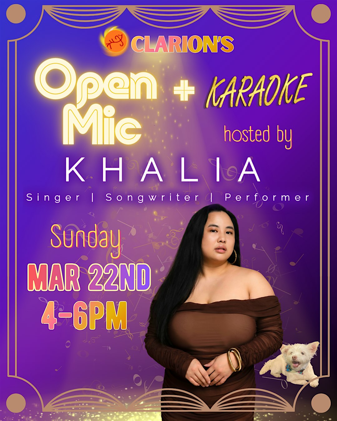 by admin27Feb Open Mic + Karaoke, hosted by Khalia at Clarion Performing Arts Center – San Francisco, CA Open Mic + Karaoke, hosted by Khalia at Clarion Performing Arts Center – San Francisco, CA 1 1 people viewed this event. Open Mic and karaoke in the heart of SF Chinatown. Khalia, a very special host, will welcome everyone with her soulful song! Sign up at 4 pm Tickets-RSVP Link Date And Time Sunday, March 22nd, 2026 04:00 PM (PST) Venue Clarion Performing Arts Center Location 2 Waverly Place, San Francisco, CA 94108 Event Types Concert or PerformanceMusic Event Category CaliforniaSan Francisco Share With Friends Facebook Twitter Linkedin Xing Pinterest Share This Post: