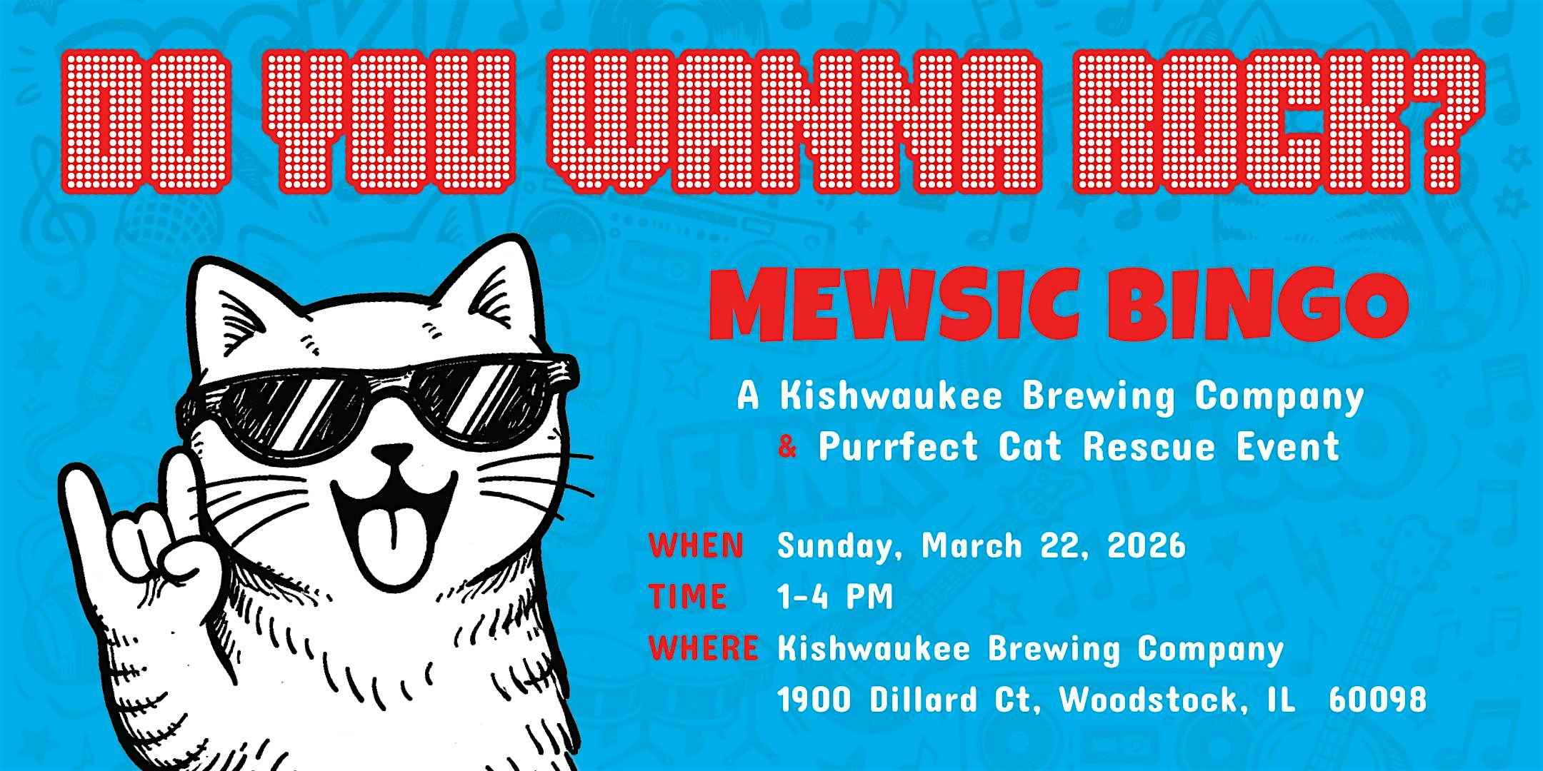 by admin13Feb Singo… A Mewsic Bingo Great Time at Kishwaukee Brewing Co. – Woodstock, IL Singo… A Mewsic Bingo Great Time at Kishwaukee Brewing Co. – Woodstock, IL 1 1 people viewed this event. Like Bingo? Like Music? Like Cats? Then join us for another music bingo event! It’s like bingo with song titles and a DJ. Tickets-RSVP Link Date And Time Sunday, March 22nd, 2026 06:00 PM (PST) Venue Kishwaukee Brewing Co. Location 1900 Dillard Court, Woodstock, IL 60098 Event Types MusicParty or Social Gathering Event Category Illinois Share With Friends Facebook Twitter Linkedin Xing Pinterest Share This Post: