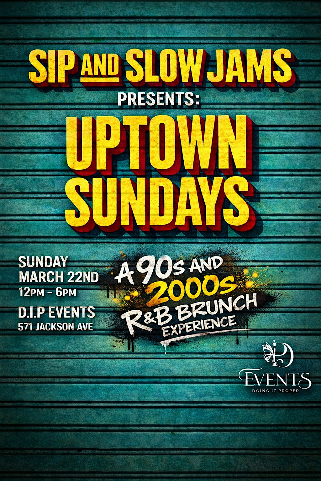 by admin27Feb Sip and Slow Jams Presents: Uptown Sundays at D.I.P Events Venue – The Bronx, NY Sip and Slow Jams Presents: Uptown Sundays at D.I.P Events Venue – The Bronx, NY 1 1 people viewed this event. We’re bringing the Sip & Slow Jams R&B experience Uptown, baby! Tickets-RSVP Link Date And Time Sunday, March 22nd, 2026 12:00 PM (PST) Venue D.I.P Events Venue Location 571 Jackson Avenue, The Bronx, NY 10455 Event Types Concert or PerformanceMusic Event Category New YorkNew York City Share With Friends Facebook Twitter Linkedin Xing Pinterest Share This Post: