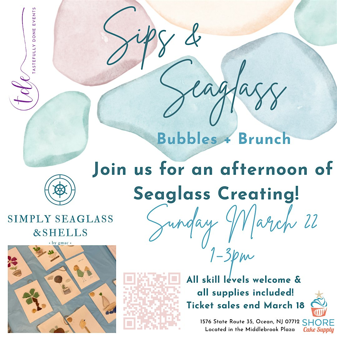 by admin24Feb Sips. & Seaglass at Shore Cake Supply – Ocean Township, NJ Sips. & Seaglass at Shore Cake Supply – Ocean Township, NJ 3 3 people viewed this event. Join us for an afternoon of sea glass creating! All skill levels welcome — all supplies included. Tickets-RSVP Link Date And Time Sunday, March 22nd, 2026 01:00 PM (PST) Venue Shore Cake Supply Location 1576 New Jersey 35, Ocean Township, NJ 7712 Event Types Festival or FairFood & Drink Event Category New Jersey Share With Friends Facebook Twitter Linkedin Xing Pinterest Share This Post: