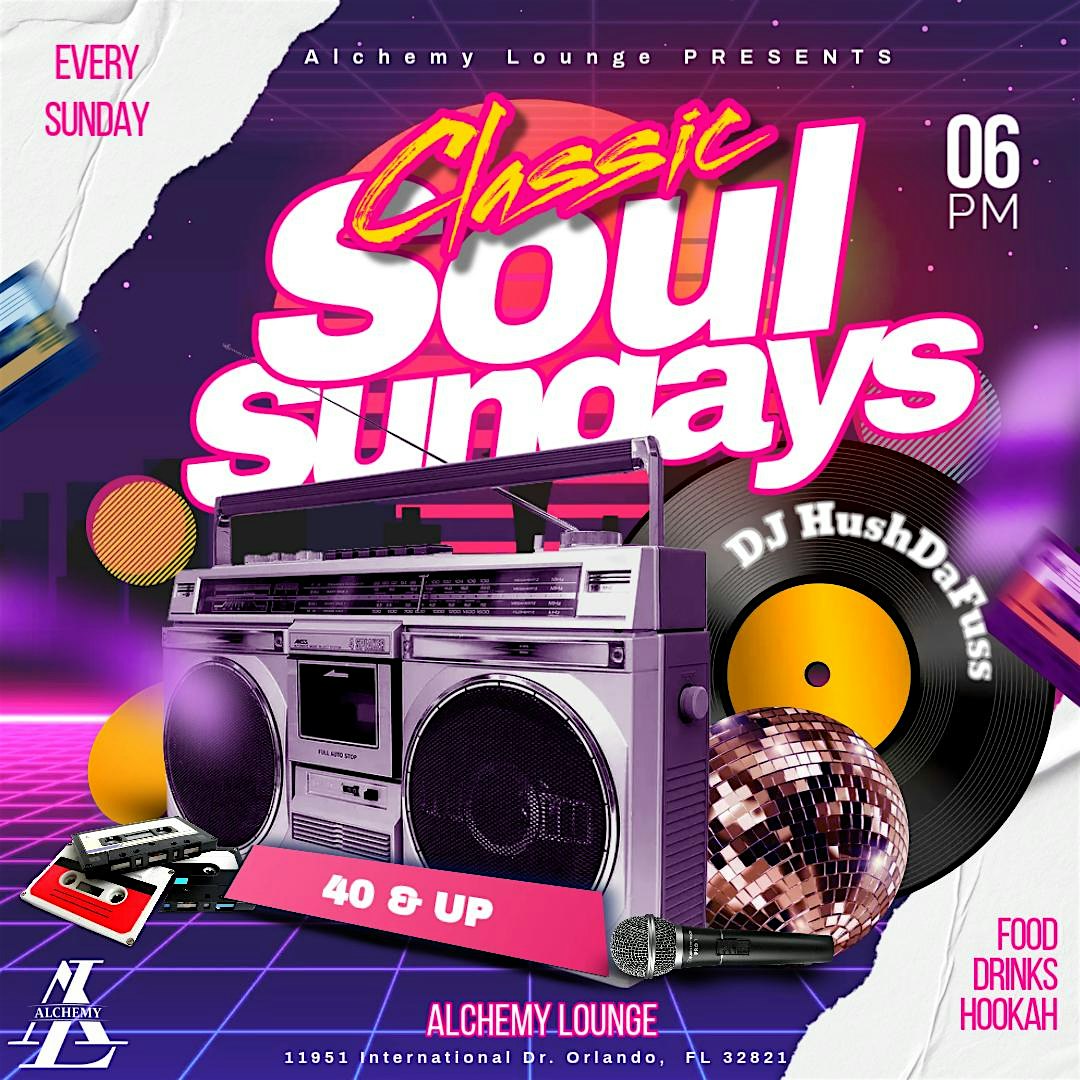 by admin24Feb Soul Sundays at Alchemy lounge – Orlando, FL Soul Sundays at Alchemy lounge – Orlando, FL 3 3 people viewed this event. Grown & Sexy vibe for the 40+ crowd, featuring smooth R&B, soulful classics, and timeless groves. Tickets-RSVP Link Date And Time Sunday, March 22nd, 2026 06:00 PM (PST) Venue Alchemy lounge Location 11951 International Drive, Orlando, FL 32821 Event Types MusicParty or Social Gathering Event Category FloridaOrlando Share With Friends Facebook Twitter Linkedin Xing Pinterest Share This Post: