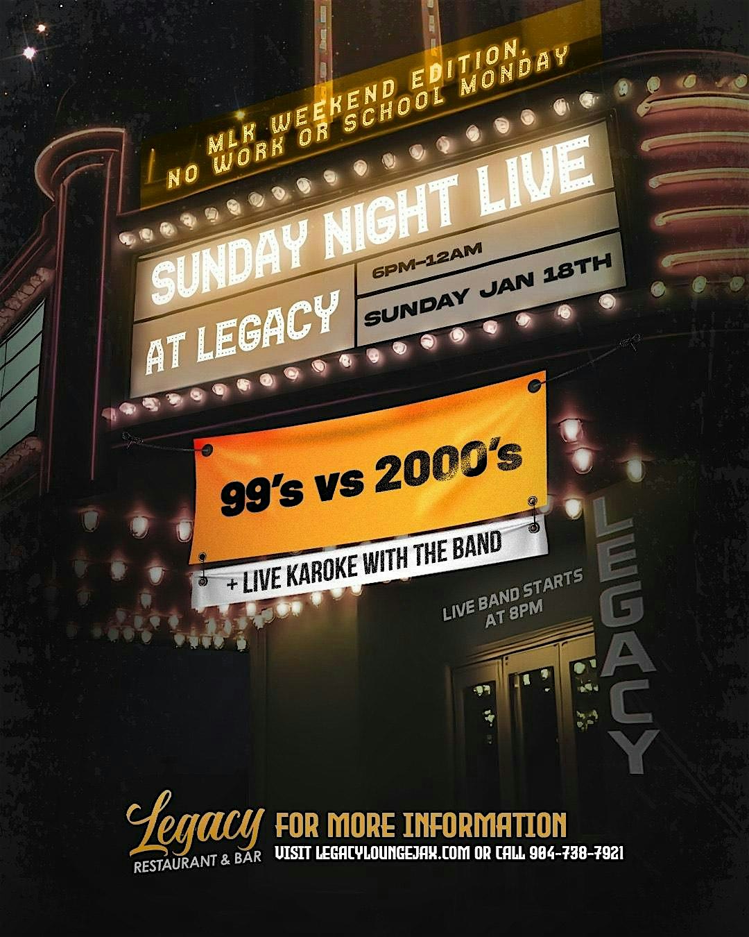 Sunday Night Live At Legacy – Live Music W/ Dats Pressure Band+Live Karaoke at 3610 Blanding Blvd – Jacksonville, FL Sunday Night Live At Legacy – Live Music W/ Dats Pressure Band+Live Karaoke at 3610 Blanding Blvd – Jacksonville, FL 2 2 people viewed this event. Sunday Night Live At Legacy > Live Music With @datspressure Kicks Off At 8PM NO COVER CHARGE Happy Hour Kicks Off at 6PM Tickets-RSVP Link Register for event Date And Time Sunday, March 22nd, 2026 @ 06:00 PM Location 3610 Blanding Boulevard, Jacksonville, FL 32210 Event Types Concert or PerformanceMusic Event Category FloridaJacksonville Share With Friends Facebook Twitter Linkedin Xing Pinterest