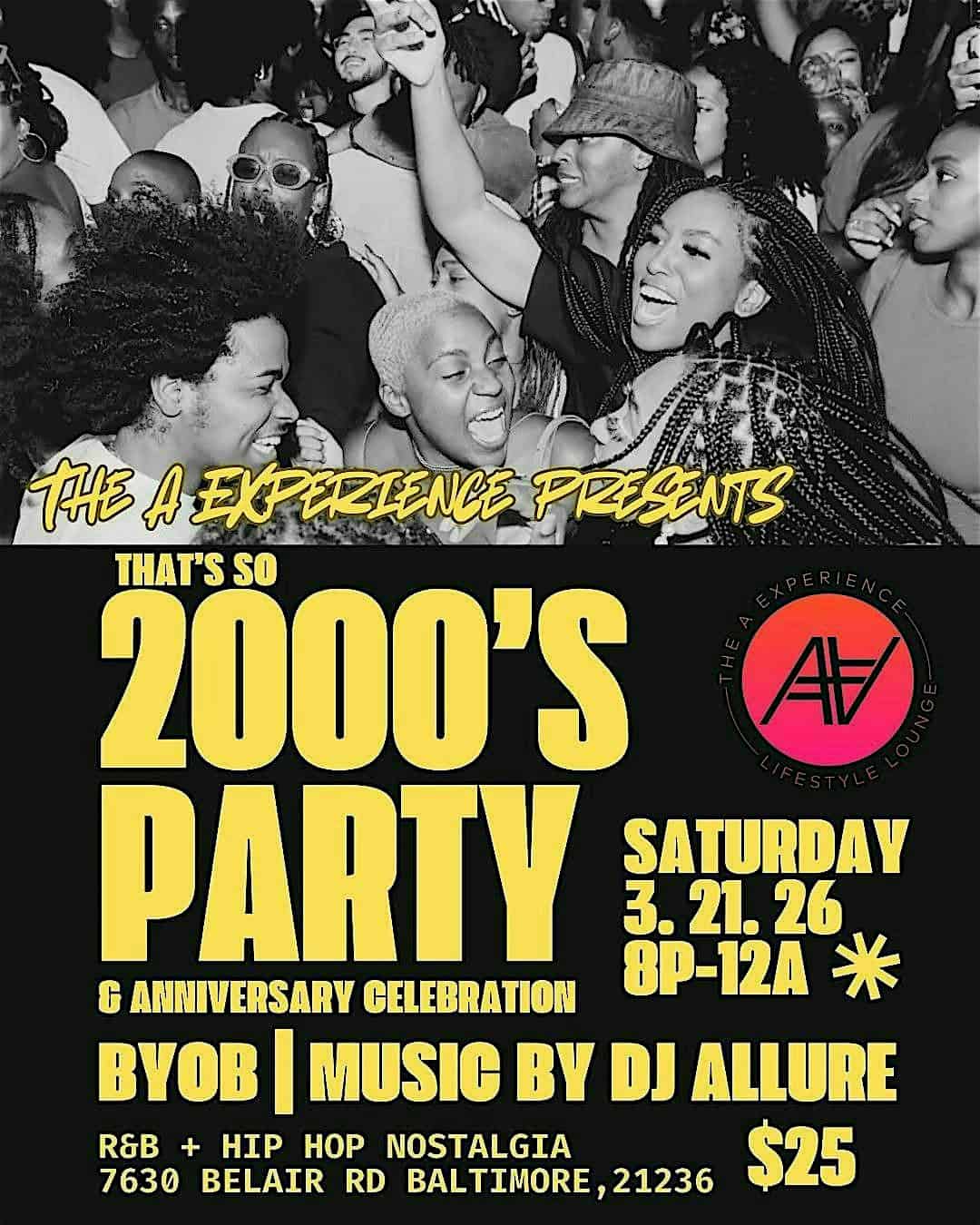 by admin14Feb That’s So 2000’s R&B/Hip Hop Party at The A Experience Lifestyle Lounge – Baltimore, MD That’s So 2000’s R&B/Hip Hop Party at The A Experience Lifestyle Lounge – Baltimore, MD 2 2 people viewed this event. Calling all millennials… we’re taking it back to the 99-2000s! Sing and dance to all the R&B, Hip-Hop and Reggae of this nostalgic era. Tickets-RSVP Link Date And Time Sunday, March 22nd, 2026 12:00 AM (PST) Venue The A Experience Lifestyle Lounge Location 7630 Belair Road, Baltimore, MD 21236 Share With Friends Facebook Twitter Linkedin Xing Pinterest Share This Post: