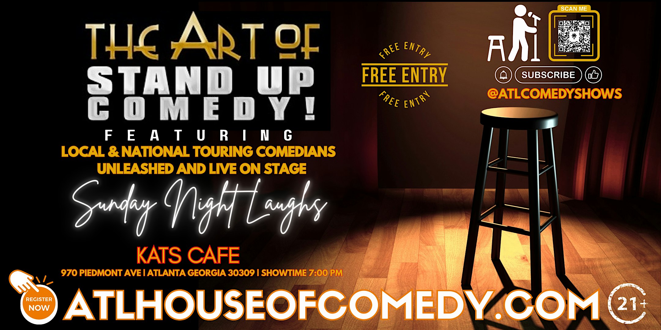 The Art of Stand Up Comedy this Sunday @ Kats Cafe at Kat’s Cafe – Atlanta, GA The Art of Stand Up Comedy this Sunday @ Kats Cafe at Kat’s Cafe – Atlanta, GA 2 2 people viewed this event. Get ready to laugh until your stomach hurts at this hilarious comedy show happening every Sunday @ 7:00 PM (get your tickets & tables now!) Tickets-RSVP Link Register for event Date And Time Sunday, March 22nd, 2026 @ 07:00 PM Location 970 Piedmont Avenue Northeast, Atlanta, GA 30309 Event Types AttractionFood & Drink Event Category AtlantaGeorgia Share With Friends Facebook Twitter Linkedin Xing Pinterest