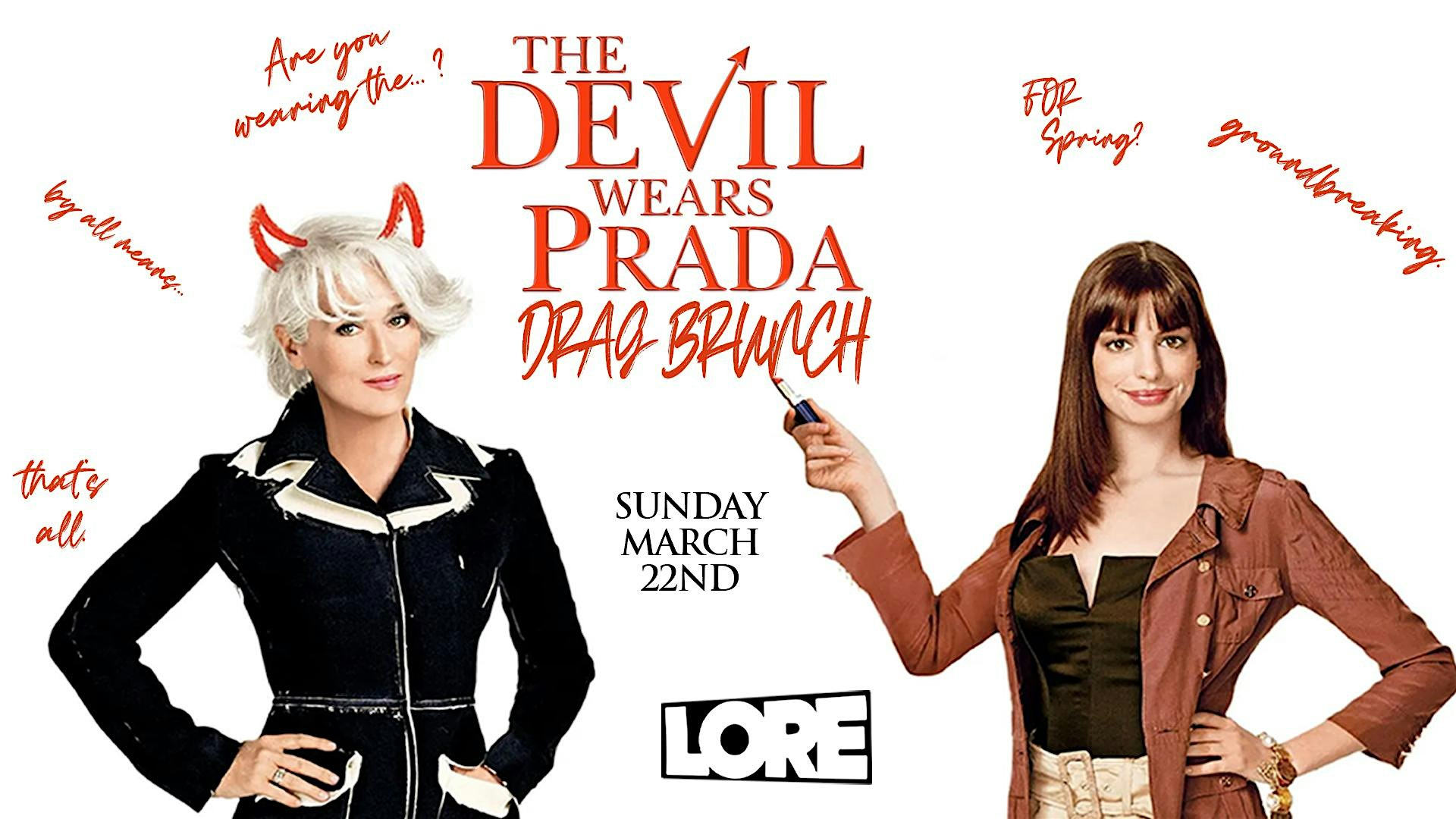 by admin27Feb The Devil Wears Prada Drag Brunch at Lore – Atlanta, GA The Devil Wears Prada Drag Brunch at Lore – Atlanta, GA 1 1 people viewed this event. Drag Brunch? Celebrating the release of Devil Wears Prada 2? Groundbreaking. Tickets-RSVP Link Date And Time Sunday, March 22nd, 2026 @ 12:00 PM Location 466 Edgewood Avenue Southeast, Atlanta, GA 30312 Event Types Film, Media & EntertainmentParty or Social Gathering Event Category AtlantaGeorgia Share With Friends Facebook Twitter Linkedin Xing Pinterest Share This Post: