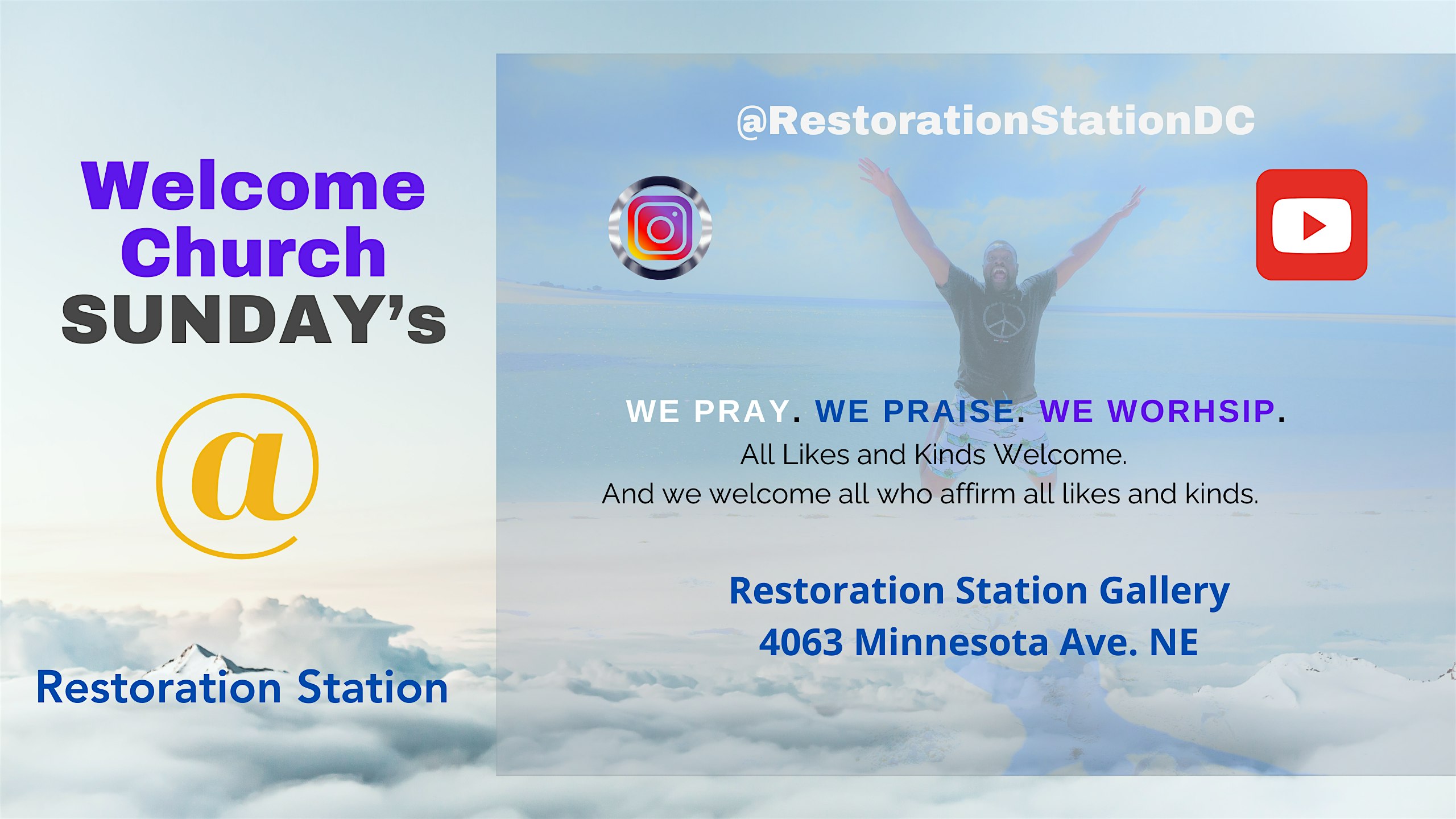 Welcome Church Free-Style Praise & Worship Session at Restoration Station, Minnesota Avenue Northeast, Washington, DC, USA – Washington, DC Welcome Church Free-Style Praise & Worship Session at Restoration Station, Minnesota Avenue Northeast, Washington, DC, USA – Washington, DC 2 2 people viewed this event. Join us for an open hour of praise, worship and dance to fee the mind, express gratitude and recharge our souls. Tickets-RSVP Link Register for event Date And Time Sunday, March 22nd, 2026 @ 03:00 PM Location 4063 Minnesota Avenue Northeast, Washington, DC 20019 Event Types Concert or Performance Event Category Washington DC Share With Friends Facebook Twitter Linkedin Xing Pinterest