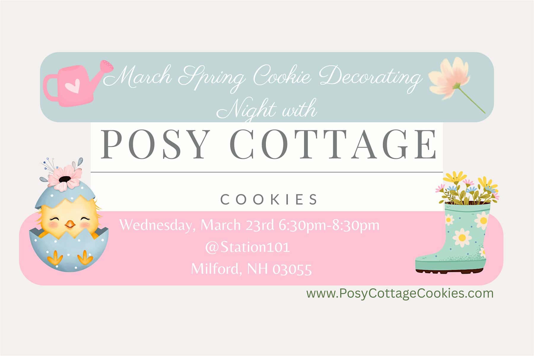 March Spring Cookie Decorating Night with Posy Cottage Cookies at Station 101, Union Square, Milford, NH, USA – Milford, NH