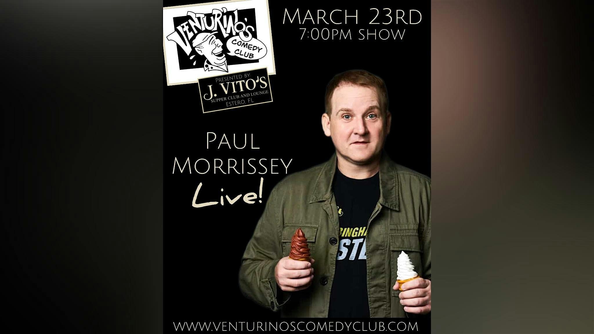 by admin14Feb Paul Morrissey at Venturino’s Comedy Club! at J. Vito’s Supper Club and Lounge – Estero, FL Paul Morrissey at Venturino’s Comedy Club! at J. Vito’s Supper Club and Lounge – Estero, FL 2 2 people viewed this event. As seen on his many tv appearances and on tour with Tom Papa, Paul Morrissey returns to Estero for One Night Only! Tickets-RSVP Link Date And Time Monday, March 23rd, 2026 11:00 PM (PST) Venue J. Vito's Supper Club and Lounge Location 20041 South Tamiami Trail, Estero, FL 33928 Event Types Concert or PerformancePerforming & Visual Arts Event Category Florida Share With Friends Facebook Twitter Linkedin Xing Pinterest Share This Post: