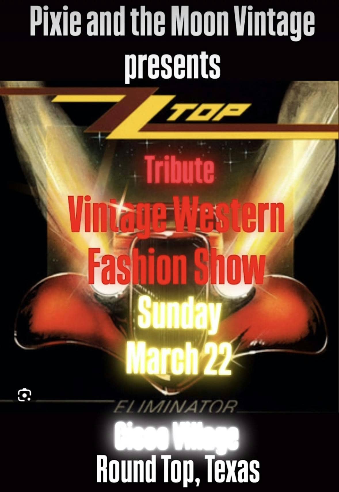 by admin14Feb Pixie and the Moon Presents: A Tribute to ZZ Top Fashion Show at Cisco Village – Round Top, TX Pixie and the Moon Presents: A Tribute to ZZ Top Fashion Show at Cisco Village – Round Top, TX 2 2 people viewed this event. Get ready for a rockin’ fashion show inspired by ZZ Top’s iconic style! Tickets-RSVP Link Date And Time Monday, March 23rd, 2026 01:00 AM (PST) Venue Cisco Village Location 1350 Texas 237, Round Top, TX 78954 Event Types Concert or PerformanceFashion & Beauty Event Category Texas Share With Friends Facebook Twitter Linkedin Xing Pinterest Share This Post: