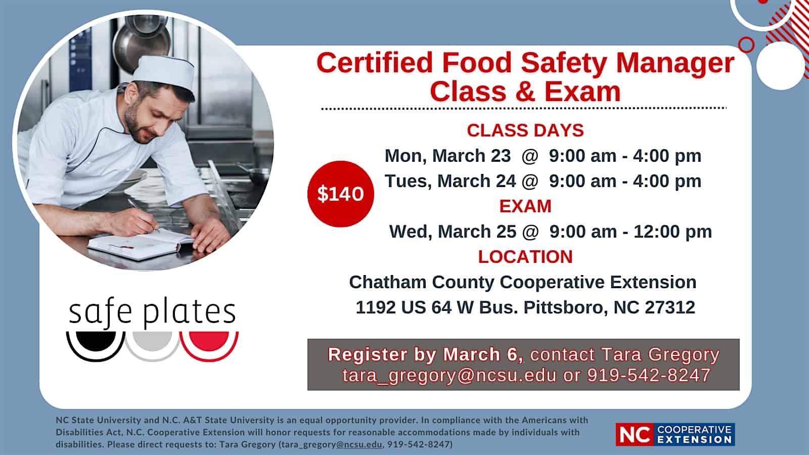 Safe Plates for Food Managers Certification Course + Exam at N.C. Cooperative Extension, Chatham County Center – Pittsboro, NC