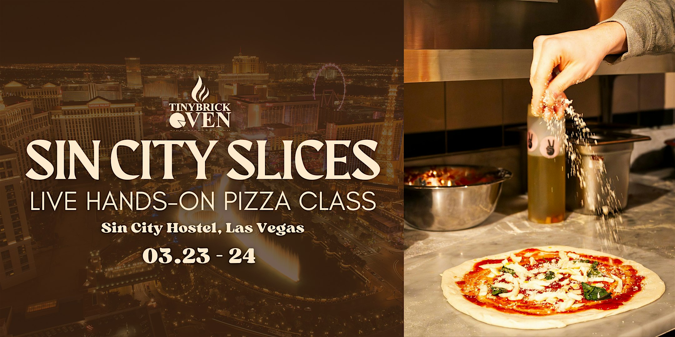by admin24Feb Sin City Slices: Hands-On Pizza Class with TinyBrickOven at Sin City Hostel – Las Vegas, NV Sin City Slices: Hands-On Pizza Class with TinyBrickOven at Sin City Hostel – Las Vegas, NV 2 2 people viewed this event. Hands-on pizza class with Chef Will of Barstool-rated TinyBrickOven. Make your own pie: BYO drinks for a Vegas pizza party. Tickets-RSVP Link Date And Time Monday, March 23rd, 2026 06:00 PM (PST) Venue Sin City Hostel Location 1208 South Las Vegas Boulevard, Las Vegas, NV 89104 Event Types Food & Drink Event Category Las VegasNevada Share With Friends Facebook Twitter Linkedin Xing Pinterest Share This Post: