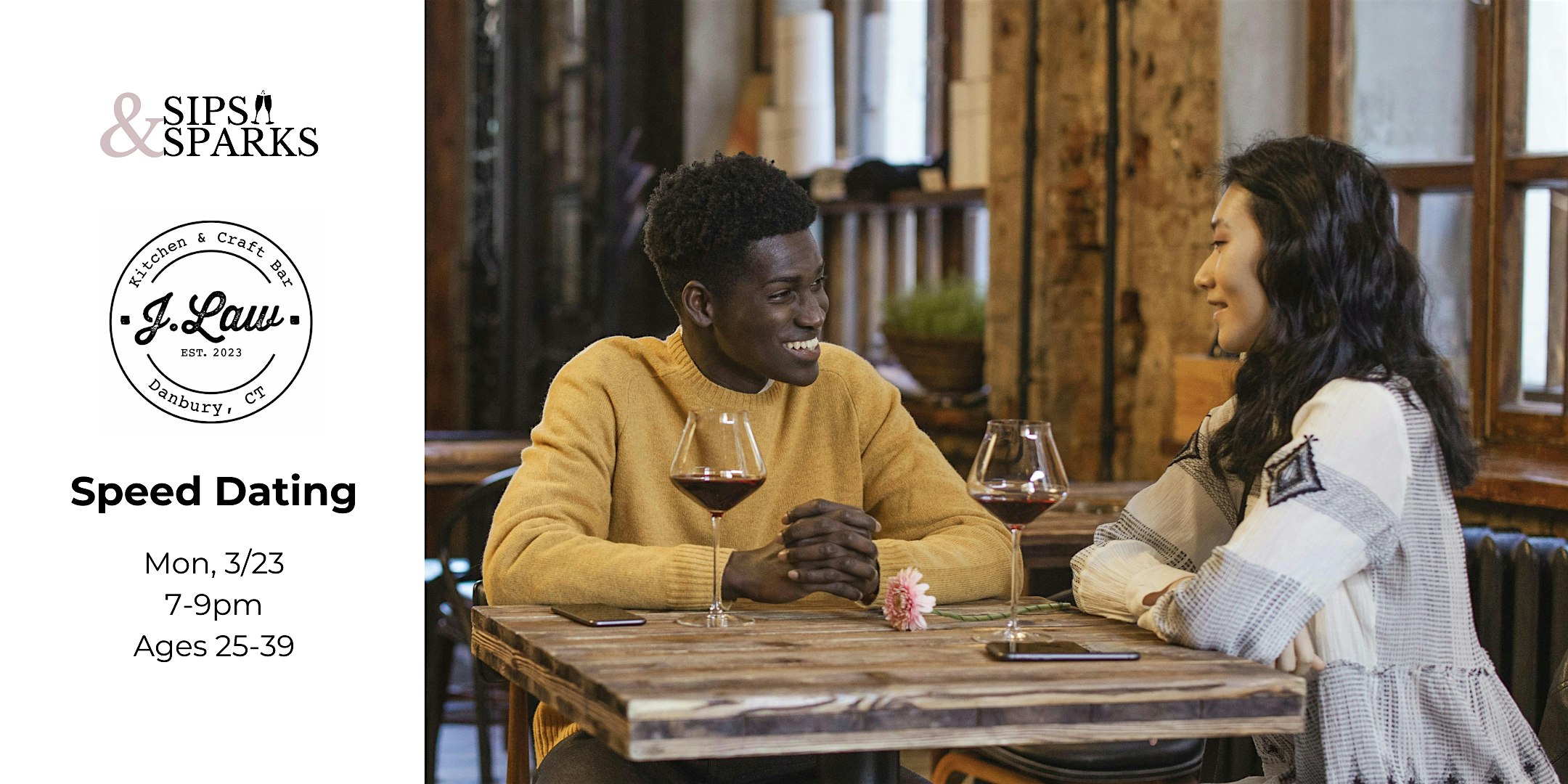 by admin13Feb Speed Dating Ages 25-39 in Danbury, CT at J.Law Kitchen & Craft Bar at J Law Kitchen & Craft Bar – Danbury, CT Speed Dating Ages 25-39 in Danbury, CT at J.Law Kitchen & Craft Bar at J Law Kitchen & Craft Bar – Danbury, CT 2 2 people viewed this event. Ready to meet local singles face-to-face? Join us for a fun, low-pressure evening of meaningful connections! Tickets-RSVP Link Date And Time Monday, March 23rd, 2026 11:00 PM (PST) Venue J Law Kitchen & Craft Bar Location 30 Germantown Road, Danbury, CT 6810 Event Types Community & CultureParty or Social Gathering Event Category Connecticut Share With Friends Facebook Twitter Linkedin Xing Pinterest Share This Post: