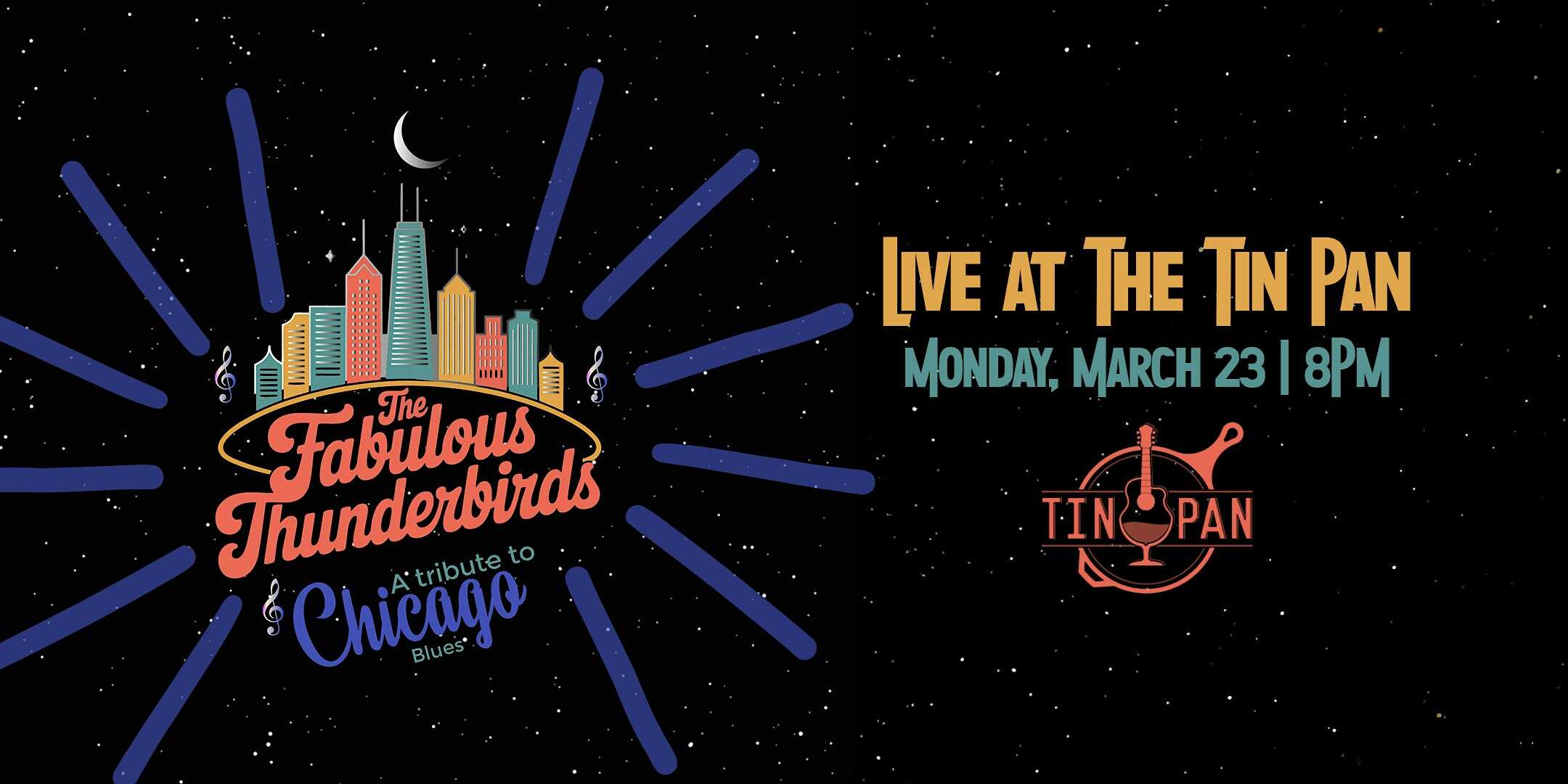 by admin23Feb The Fabulous Thunderbirds: A Tribute to Chicago Blues at The Tin Pan – Richmond, VA The Fabulous Thunderbirds: A Tribute to Chicago Blues at The Tin Pan – Richmond, VA 1 1 people viewed this event. The Fabulous Thunderbirds appearing at The Tin Pan in Richmond, VA Tickets-RSVP Link Date And Time Monday, March 23rd, 2026 08:00 PM (PST) Venue The Tin Pan Location 8982 Quioccasin Road, Richmond, VA 23229 Event Types Concert or PerformanceMusic Event Category Virginia Share With Friends Facebook Twitter Linkedin Xing Pinterest Share This Post:
