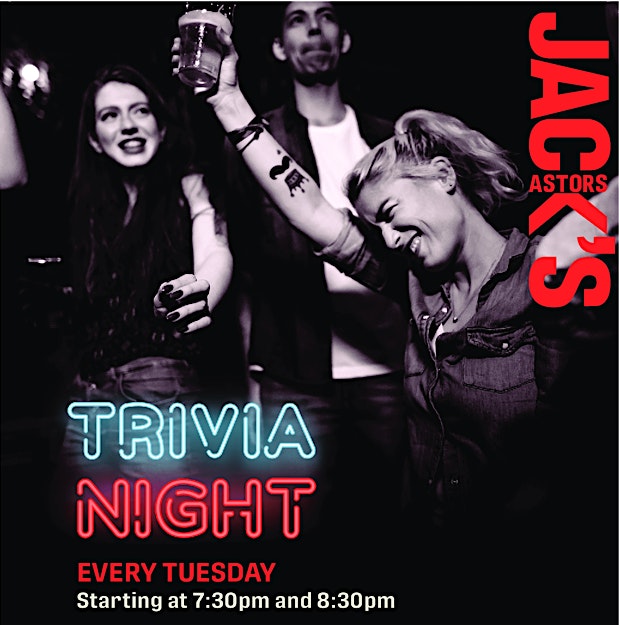 Jack’s Tuesday Night Trivia (Square One) (free) at Jack’s Square One – Mississauga, Canada Jack’s Tuesday Night Trivia (Square One) (free) at Jack’s Square One – Mississauga, Canada 1 1 people viewed this event. Get your think on every Tuesday night at 7:30pm and 8:30pm. Answer the questions with your mobile device, no app needed. Tickets-RSVP Link Register for event Date And Time Tuesday, March 24th, 2026 @ 07:00 PM Location 219 Rathburn Road West, Mississauga, Canada L5B 4C1 Event Types Food & DrinkGame or Competition Event Category CanadaToronto Share With Friends Facebook Twitter Linkedin Xing Pinterest