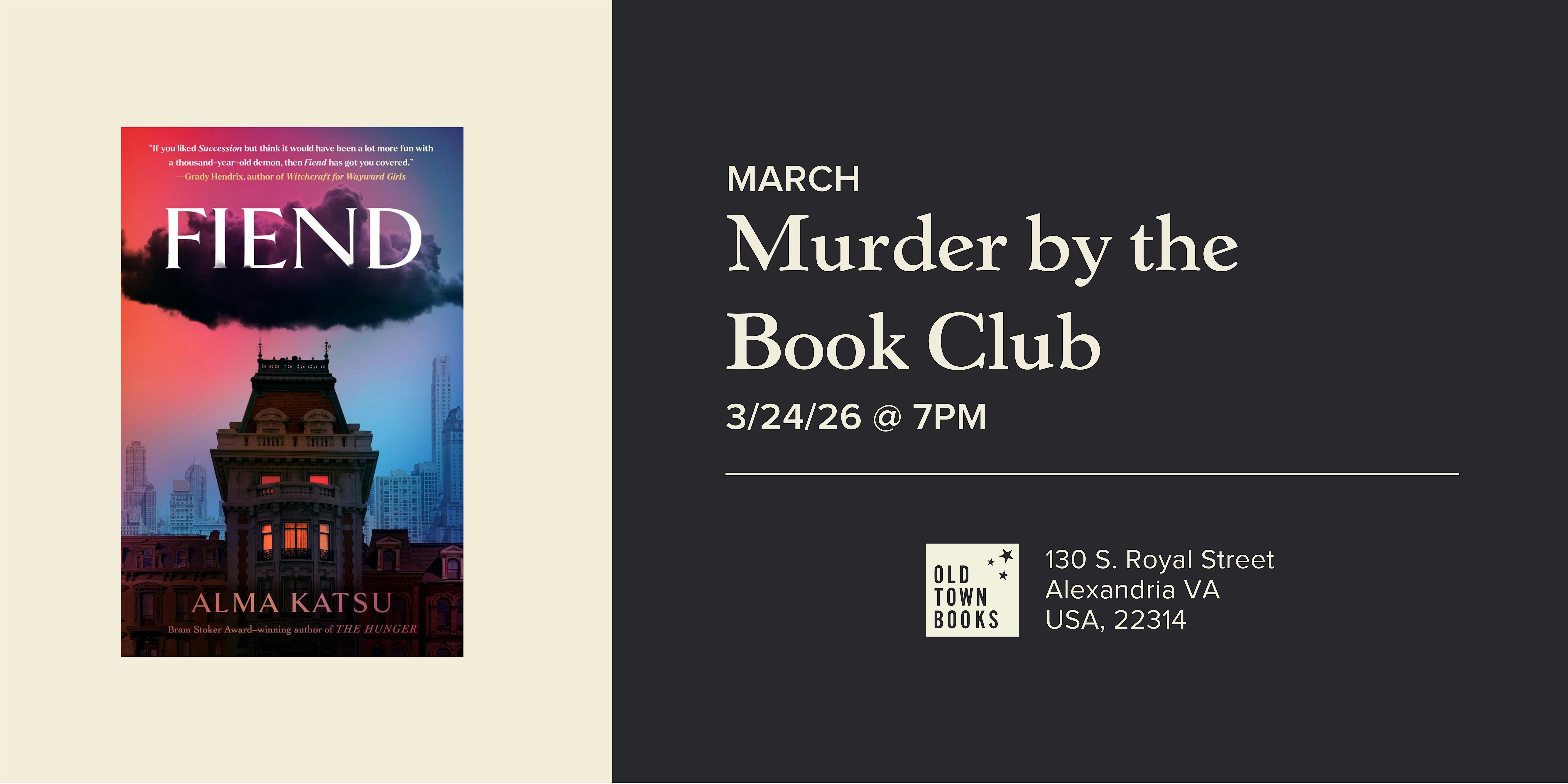 by admin23Feb March Murder by the Book Club: Fiend at Old Town Books – Alexandria, VA March Murder by the Book Club: Fiend at Old Town Books – Alexandria, VA 2 2 people viewed this event. Join us for a thrilling discussion of our March Murder by the Book Club pick: Fiend by Alma Katsu Tickets-RSVP Link Date And Time Tuesday, March 24th, 2026 07:00 PM (PST) Venue Old Town Books Location 130 South Royal Street, Alexandria, VA 22314 Event Types Party or Social Gathering Event Category Virginia Share With Friends Facebook Twitter Linkedin Xing Pinterest Share This Post: