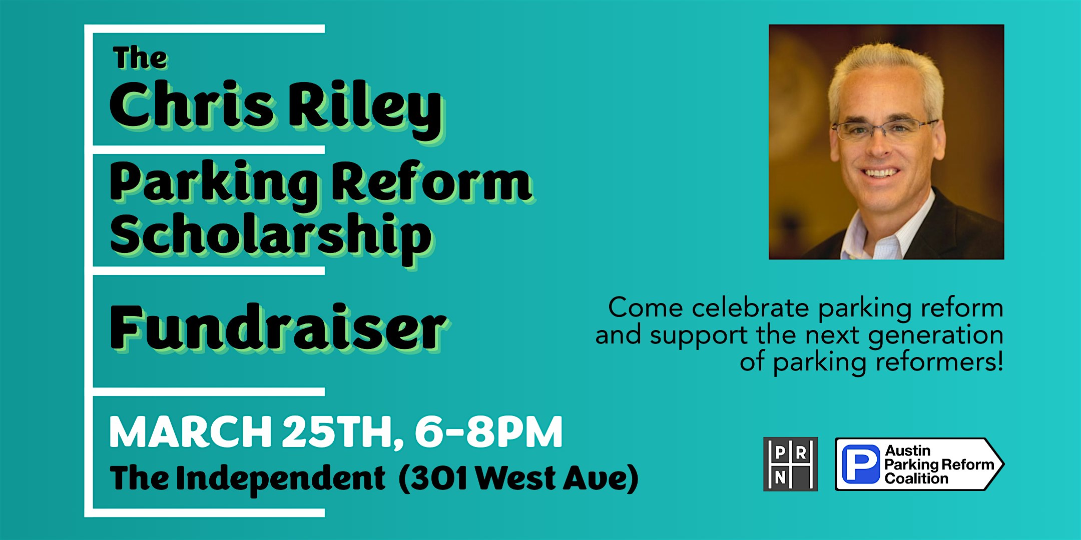 by admin27Feb Chris Riley Parking Reform Scholarship Fundraiser at The Independent – Austin, TX Chris Riley Parking Reform Scholarship Fundraiser at The Independent – Austin, TX 2 2 people viewed this event. Come celebrate the life and legacy of former Austin Council Member and parking reform pioneer Chris Riley. Tickets-RSVP Link Date And Time Wednesday, March 25th, 2026 @ 06:00 PM Location 301 West Avenue, Austin, TX 78701 Event Types Charity & CausesParty or Social Gathering Event Category AustinTexas Share With Friends Facebook Twitter Linkedin Xing Pinterest Share This Post: