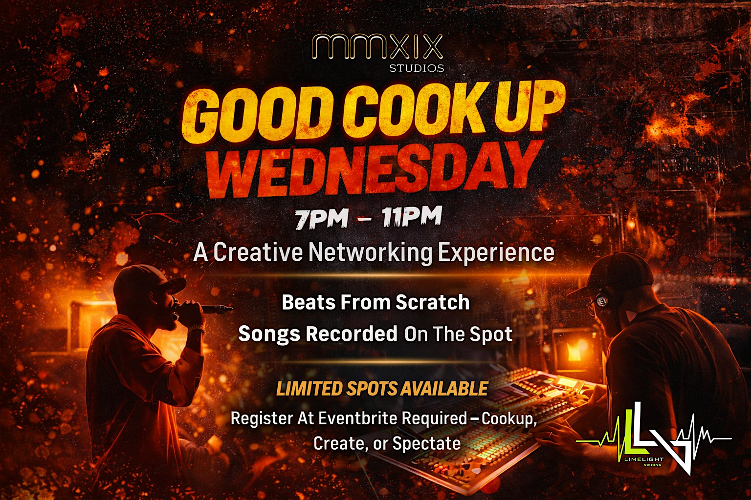 Good Cook Up Wednesday at MMXIX Studios – East Point, GA Good Cook Up Wednesday at MMXIX Studios – East Point, GA 2 2 people viewed this event. A Creative Networking Experience. Beats from scratch. Songs recorded on the Spot. Every Wednesday @ MMXIX Studios Tickets-RSVP Link Register for event Date And Time Wednesday, March 25th, 2026 @ 07:00 PM Location 1909 Washington Road, East Point, GA 30344 Event Types Class, Training, or WorkshopFood & Drink Event Category AtlantaGeorgia Share With Friends Facebook Twitter Linkedin Xing Pinterest