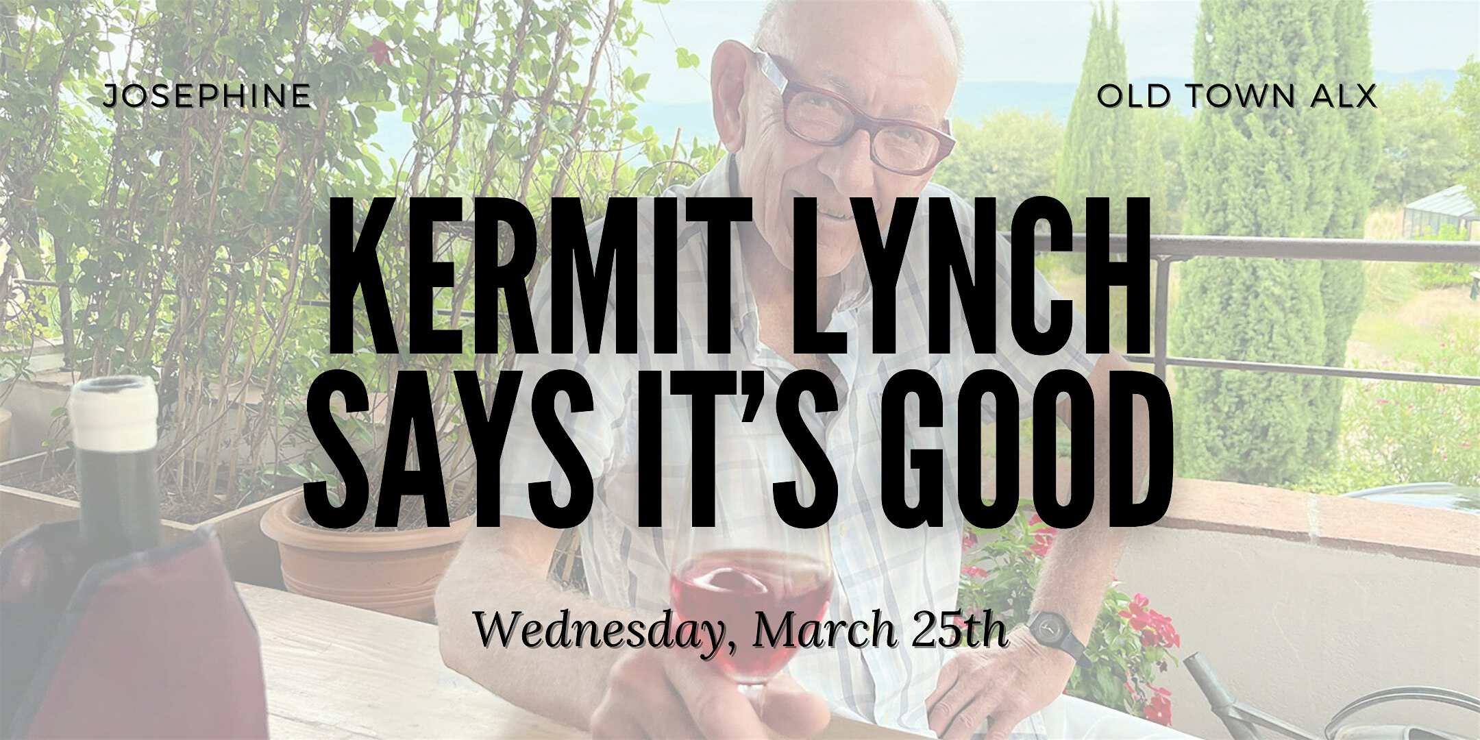 by admin24Feb Kermit Lynch Says It’s Good: A Deluxe Wine Tasting and Class at Josephine – Alexandria, VA Kermit Lynch Says It’s Good: A Deluxe Wine Tasting and Class at Josephine – Alexandria, VA 2 2 people viewed this event. Join us at Josephine for a wine tasting and class centered around the French wine selections of legendary wine importer, Kermit Lynch! Tickets-RSVP Link Date And Time Wednesday, March 25th, 2026 07:00 PM (PST) Venue Josephine Location 109 South Saint Asaph Street, Alexandria, VA 22314 Event Types Food & Drink Event Category Virginia Share With Friends Facebook Twitter Linkedin Xing Pinterest Share This Post: