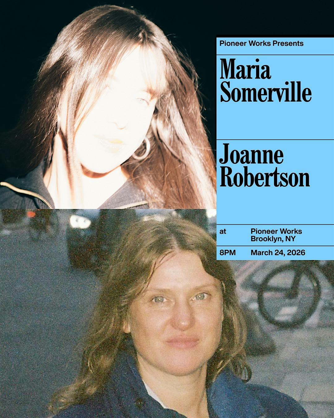 by admin13Feb Maria Somerville, Joanne Robertson at Pioneer Works – Brooklyn, NY Maria Somerville, Joanne Robertson at Pioneer Works – Brooklyn, NY 1 1 people viewed this event. Live at Pioneer Works, Brooklyn, NY Tickets-RSVP Link Date And Time Wednesday, March 25th, 2026 12:00 AM (PST) Venue Pioneer Works Location 159 Pioneer Street, Brooklyn, NY 11231 Event Types Concert or PerformanceMusic Event Category New York Share With Friends Facebook Twitter Linkedin Xing Pinterest Share This Post: