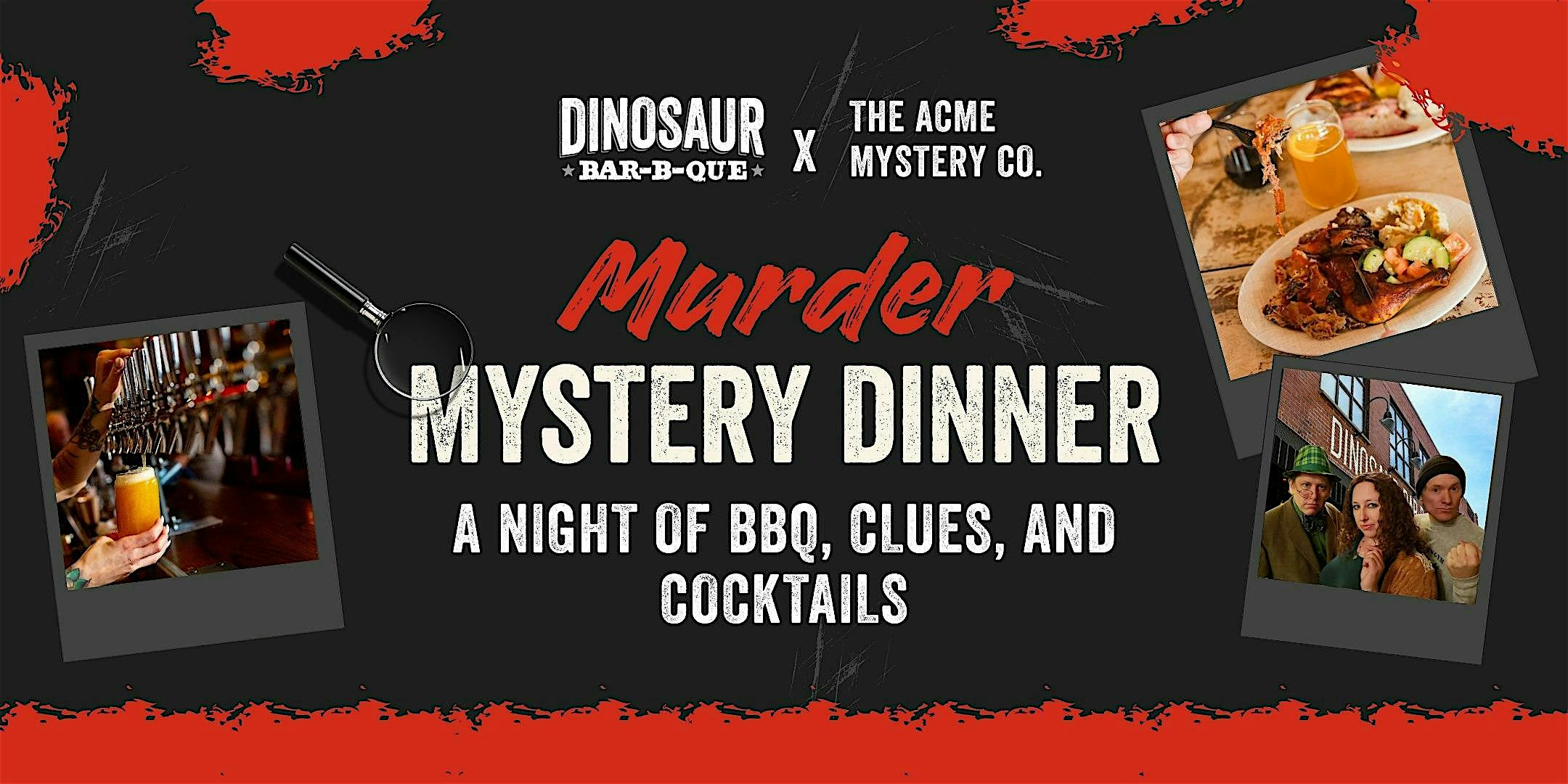 by admin27Feb Murder Mystery Dinner at Dinosaur Bar-B-Que Syracuse at Dinosaur Bar-B-Que – Syracuse, NY Murder Mystery Dinner at Dinosaur Bar-B-Que Syracuse at Dinosaur Bar-B-Que – Syracuse, NY 1 1 people viewed this event. Join us for an unforgettable night of BBQ, clues, and cocktails. This interactive murder mystery dinner places YOU inside the story. Tickets-RSVP Link Date And Time Wednesday, March 25th, 2026 07:00 PM (PST) Venue Dinosaur Bar-B-Que Location 246 West Willow Street, Syracuse, NY 13202 Event Types Food & Drink Event Category New York Share With Friends Facebook Twitter Linkedin Xing Pinterest Share This Post: