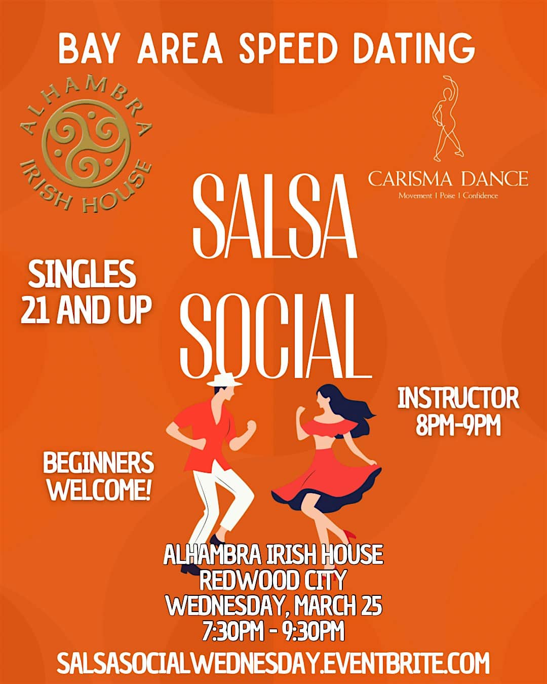 by admin23Feb SALSA SOCIAL | Ages 21 and up at Alhambra Irish House – Redwood City, CA SALSA SOCIAL | Ages 21 and up at Alhambra Irish House – Redwood City, CA 3 3 people viewed this event. Get ready to spice up your night with salsa dancing, great music, and awesome vibes for ages 21 and up! Tickets-RSVP Link Date And Time Wednesday, March 25th, 2026 07:00 PM (PST) Venue Alhambra Irish House Location 831 Main Street, Redwood City, CA 94063 Event Types Community & CultureParty or Social Gathering Event Category CaliforniaOakland Share With Friends Facebook Twitter Linkedin Xing Pinterest Share This Post: