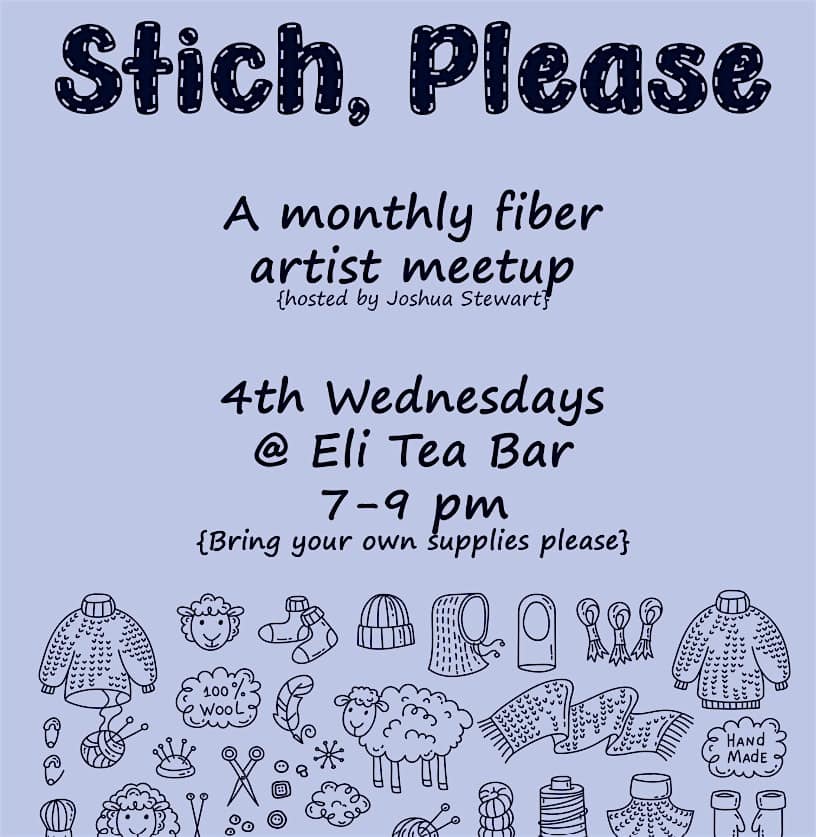 by admin23Feb Stitch, Please at Eli Tea Bar – Chicago, IL Stitch, Please at Eli Tea Bar – Chicago, IL 2 2 people viewed this event. A monthly fiber artist meetup and craft night, sponsored by Joshua Stewart Tickets-RSVP Link Date And Time Wednesday, March 25th, 2026 07:00 PM (PST) Venue Eli Tea Bar Location 5507 North Clark Street, Chicago, IL 60640 Event Types Community & CultureParty or Social Gathering Event Category ChicagoIllinois Share With Friends Facebook Twitter Linkedin Xing Pinterest Share This Post: